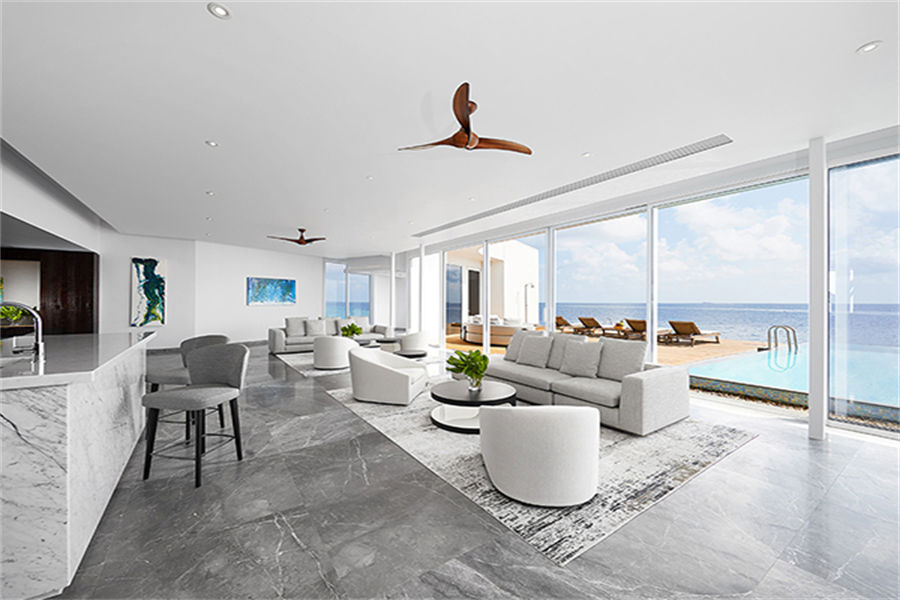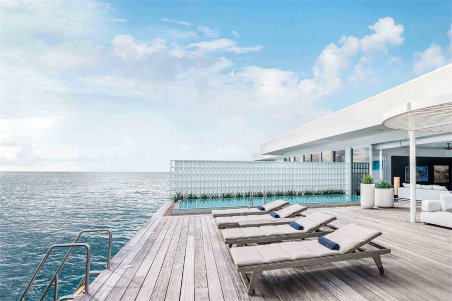 房型介绍:2栋双卧伦格里泳池海洋阁面积451㎡,位于僻静的成人专用岛屿。设有两间卧室,中央客厅的玻璃镶板地板可露出下面的海洋,设备齐全的小厨房,户外按摩浴缸,户外用餐区和两间带海景浴缸和花洒淋浴的浴室,是专为大家庭或朋友团体设计的终极水上天堂。