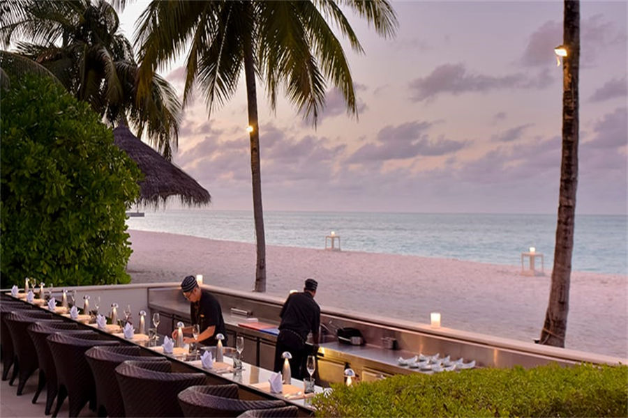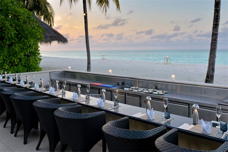 餐厅介绍:露天餐厅位于海滩上,坐拥印度洋的绝美景色,是马尔代夫康莱德酒店的其中一处万众瞩目、气氛浓烈的餐饮场所。舞动的露天烧烤篝火与熠熠星空交相辉映,主厨们在一旁准备着7道日式美食。