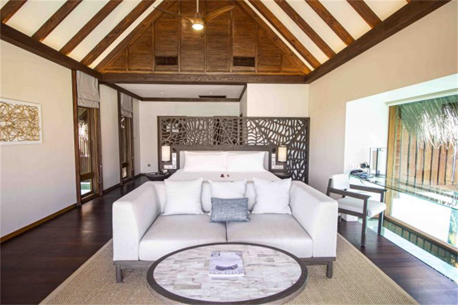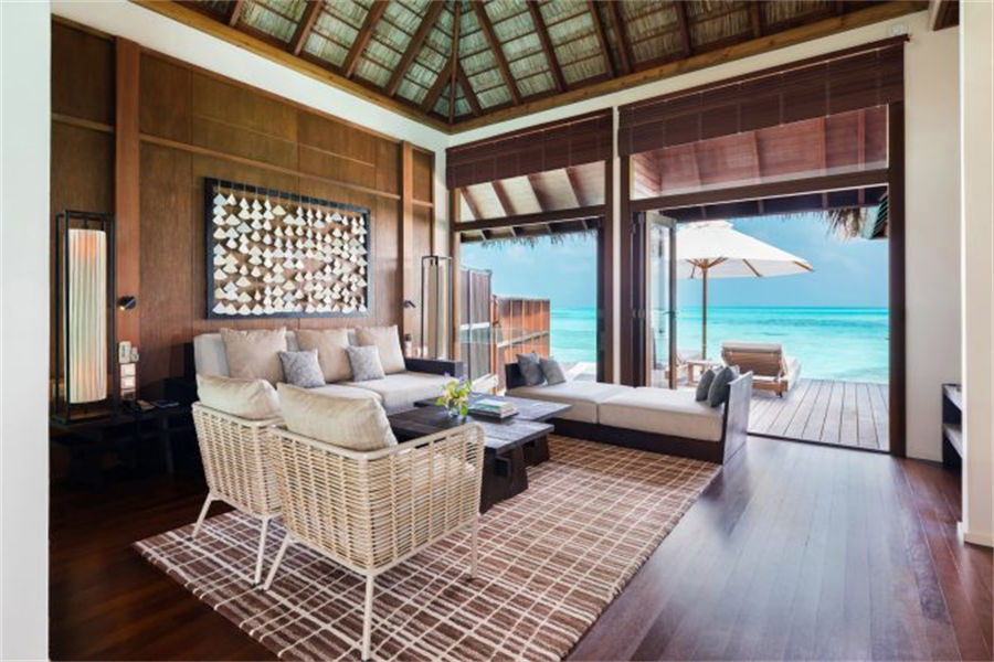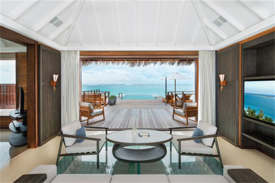 房型介绍:2栋顶级水上泳池别墅面积152㎡,位于僻静的成人专用岛屿,非常适合度蜜月。设有带休息区的典雅客房、户外用餐区、步入式衣柜以及带下沉式海景浴缸、花洒淋浴和双梳妆台的浴室。