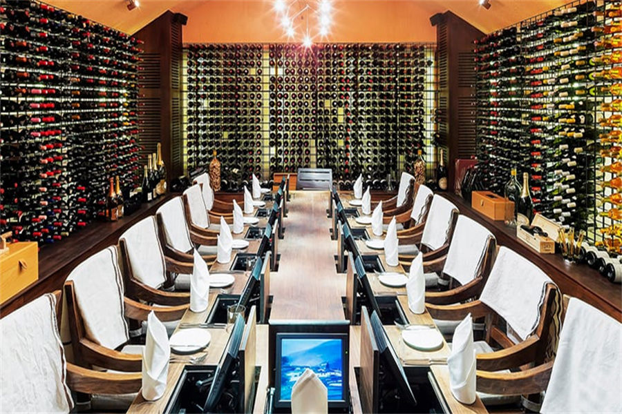 餐厅介绍:酒窖位于地下两米,收藏了约2万瓶酒,多达1400个品牌一一位居马尔代夫之最。酒窖是品尝师般客人的场所,由岛上的主厨和侍酒师管理,他们为客人配上5道菜和多达8款的美酒。12名宾客在特制的桌旁坐下,侍酒师将带领大家来一场互动之旅,在世界新旧酒区之间徜祥。