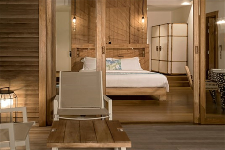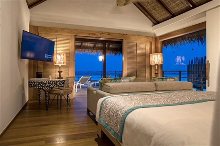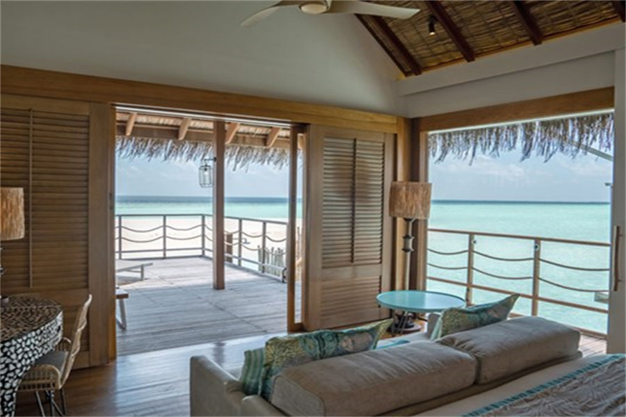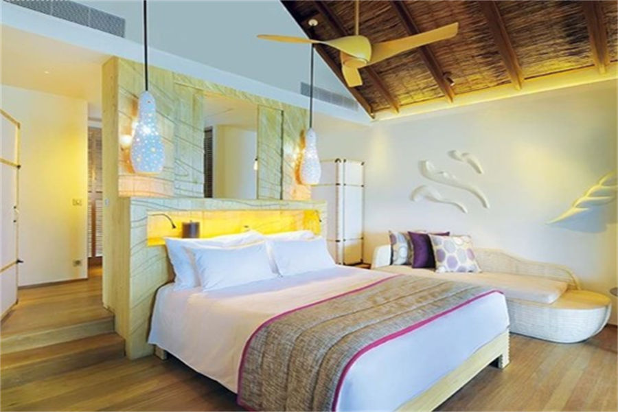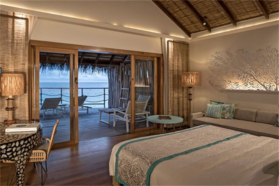 房型介绍:水上别墅全岛17栋,面积66㎡。在别墅的大露台,沉浸阳光浴或在星空下喝一杯酒,或从您的露台直接进入泻湖的水。幽静而私密,是情侣的完美去处。