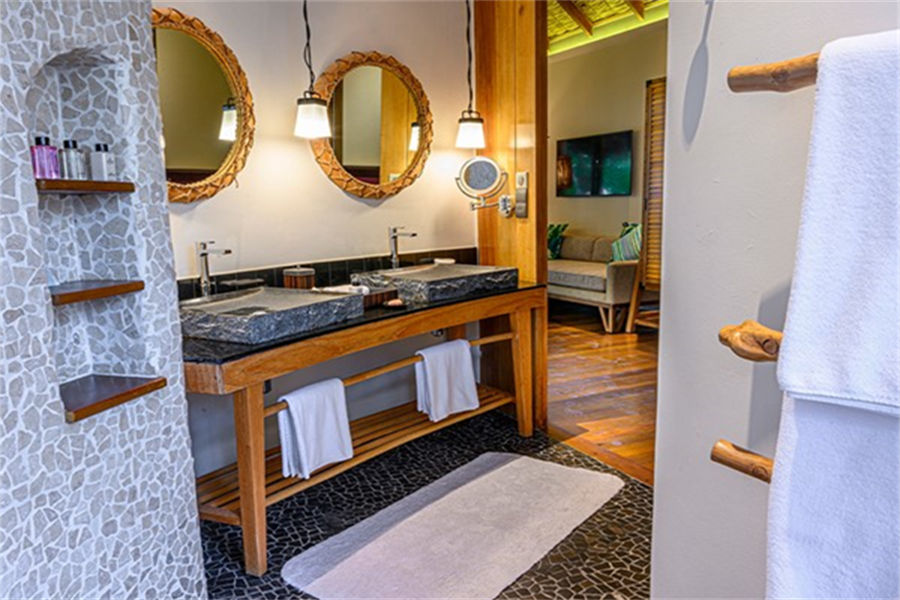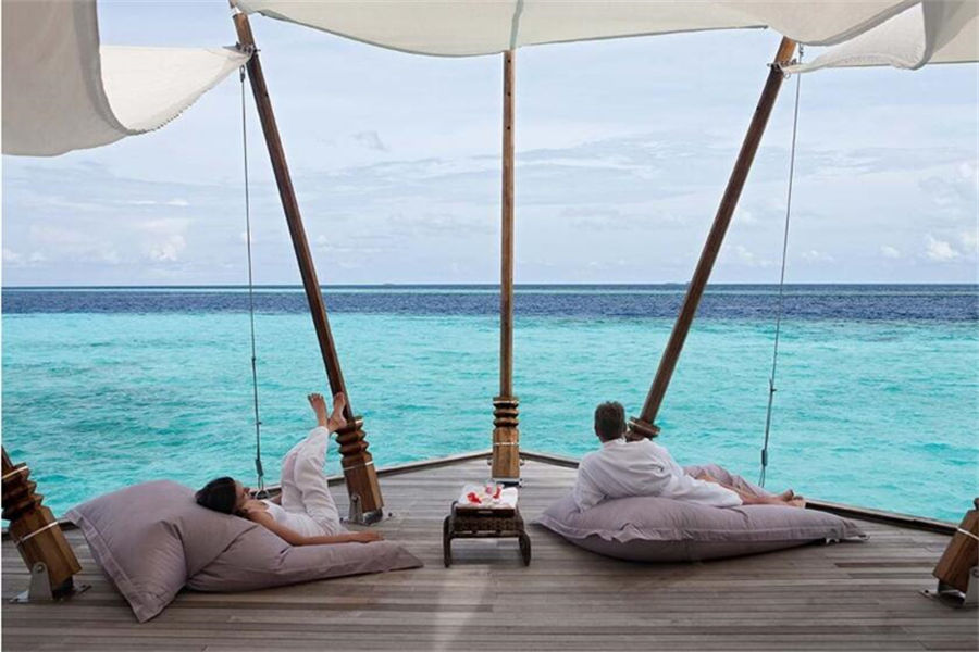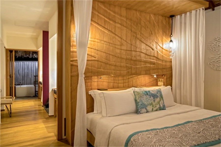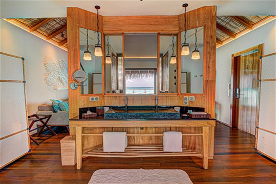 房型介绍:高级水上别墅全岛30栋,面积94㎡。浴缸似乎漂浮在泻湖上方,在豪华的浴缸中沐浴在星空下,在自己的私人露台上放松身心,享有令人叹为观止的海景,是逃离喧嚣的完美选择。