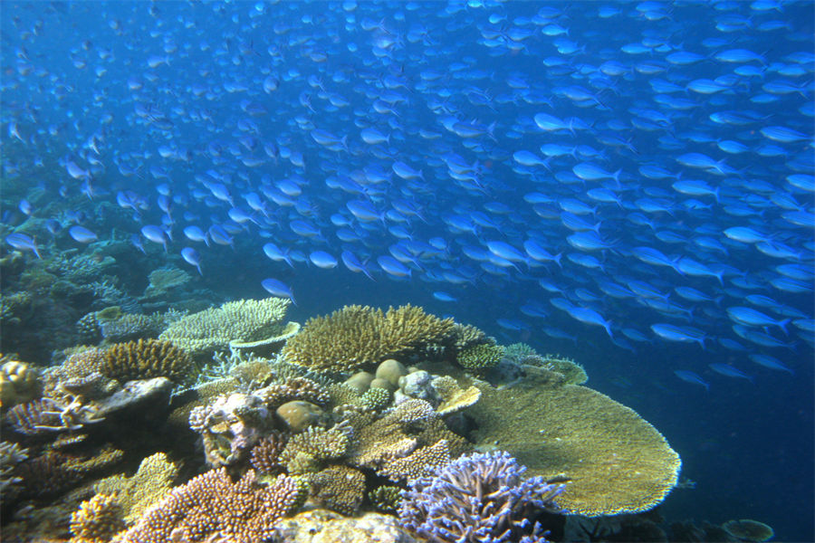 ①环礁在岛屿周围形成了一个几乎完美的圆圈,浮潜环境很好,极其适合浮潜和海岸潜水