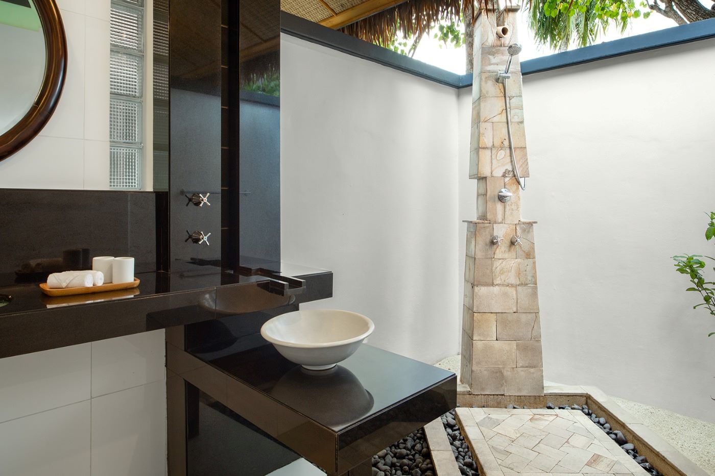 房型介绍:68㎡的海滨雨雾别墅全岛9间。拥有充足的室内外生活空间和一个带喷雾和私人休息吊床的庭院。躺在吊床上,聆听摇曳的棕榈树和海风的音乐,雾水从上方装置中倾泻而下,在炎热的天气也能让你的身心恢复活力。别墅配有一张特大号床,最多可容纳两张额外的沙发床。