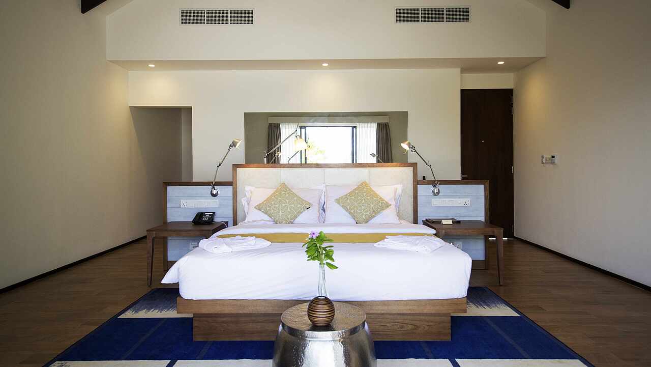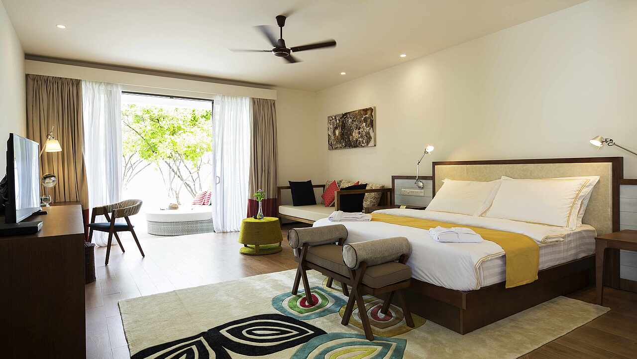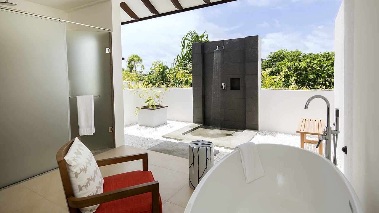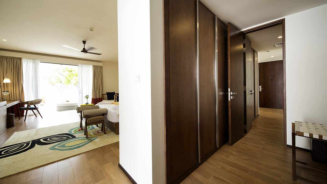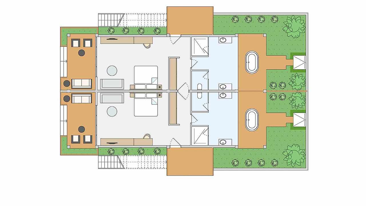 房型介绍:总统套房位于所有水屋的尽头,可以欣赏到完全无遮挡的海景、日出及日落。可以随时下水浮潜、体验大海,出于安全考虑,建议9岁及以上儿童入住。