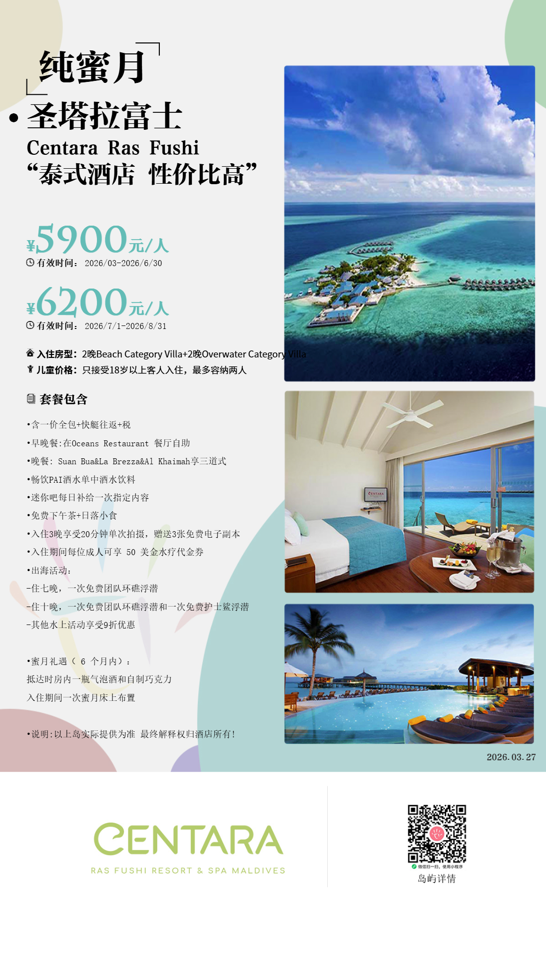 ③不接待12岁以下儿童,这是一个纯蜜月岛屿。