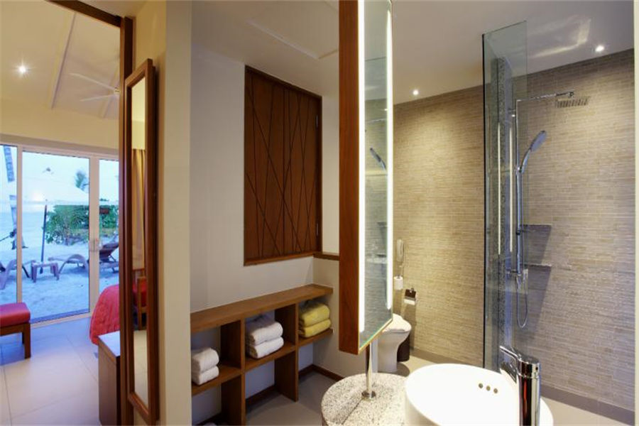 房型介绍:豪华沙滩别墅面积为51㎡,环境清幽,可直达纯白色沙滩,欣赏环礁湖的壮丽景色。别墅配有一张豪华的特大号床,一间通向室外水疗浴缸的浴室,以及一个日光休息区。