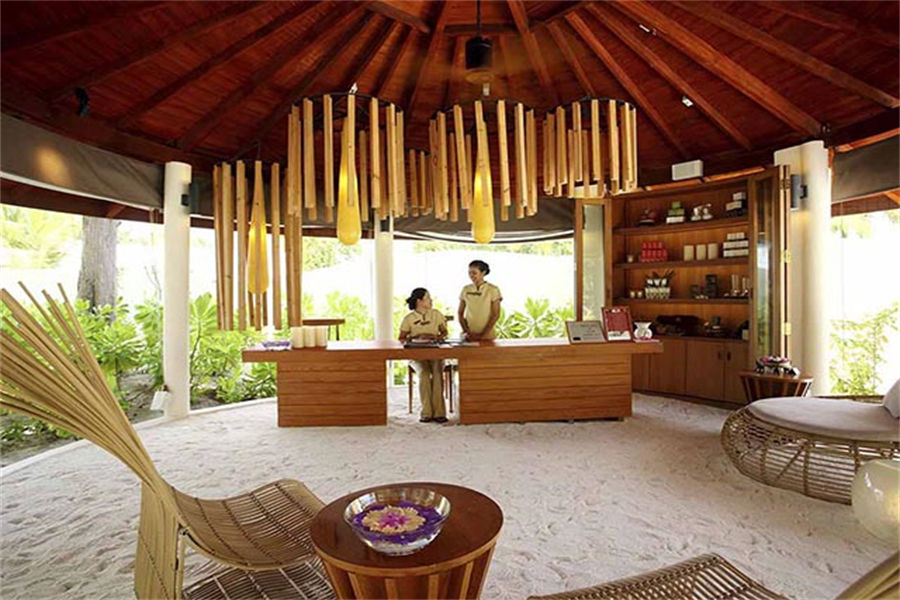活动简介:Spa中心位于海滨,可以享受前所未有的放松,沉醉于纯粹的贴身护理,并让身心重新焕发活力。设有单人和情侣套房、配备按摩浴缸的治疗室、专用于泰式按摩的独立场馆,以及布置精美的休闲场馆。从这里可以远眺海滩和环礁湖的美景,适合开展瑜伽课程,同时配备修脚和美甲沙龙。