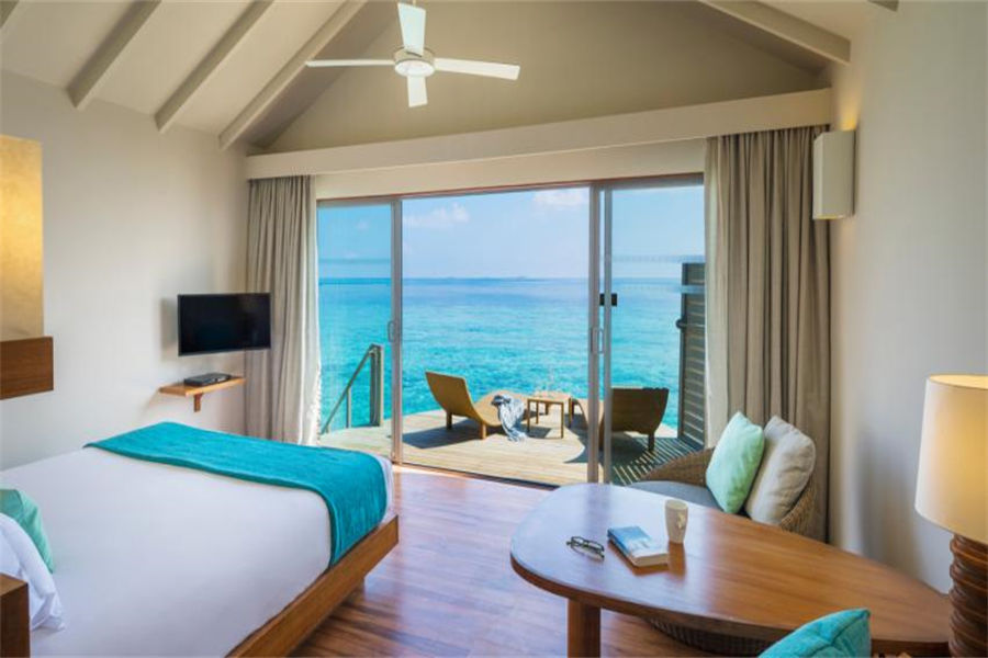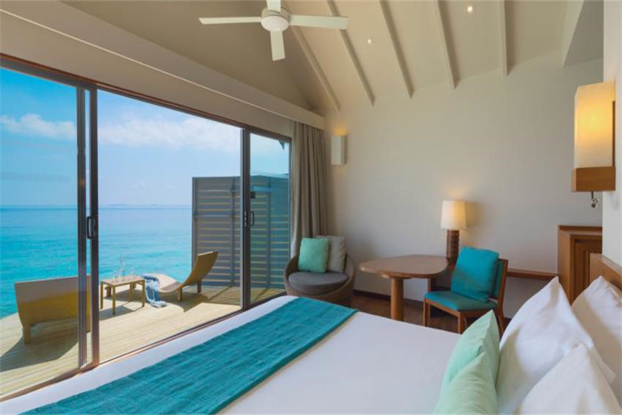 房型介绍:豪华水上别墅位于环礁湖之上,拥有42㎡起居空间。氛围浪漫,有台阶直通大海。内设一张特大号床或两张单人床,还有一个带淋浴的浴室。清晨一醒来,印度洋的迷人景色便可映入眼帘,在温暖的海水中游个早泳,开启美好的一天。