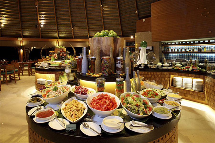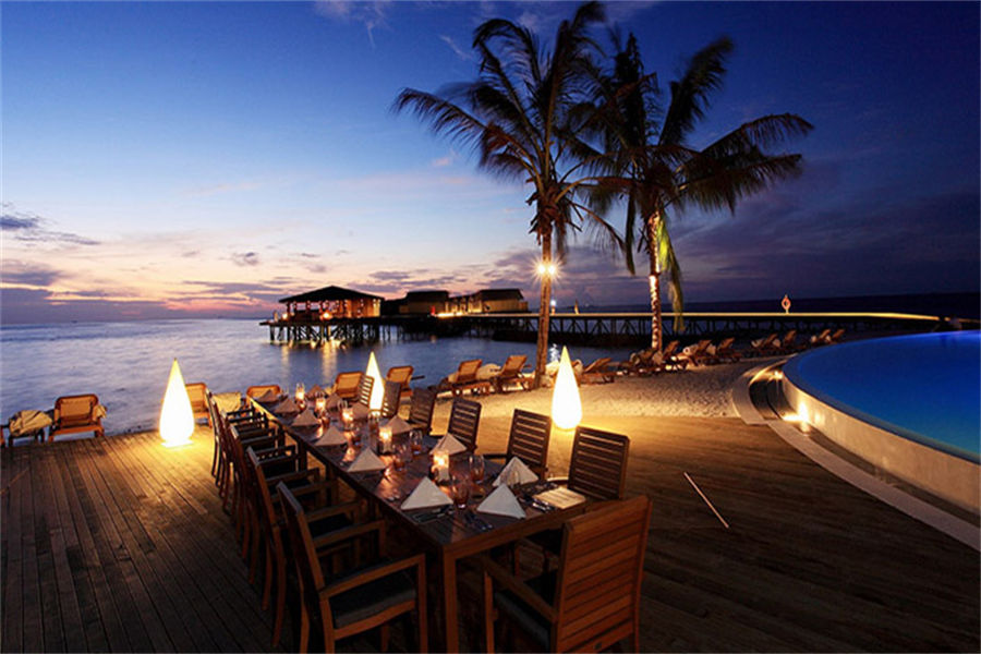 餐厅介绍:Oceans主餐厅采用传统的马尔代夫设计风格,每天轮流推出亚洲、欧洲、中东和南美风味的自助餐。现场烤制的巴西烤肉更是不容错过。