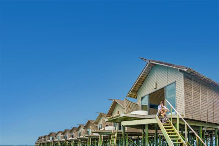 房型介绍:沙滩别墅位于细腻的沙滩上,出门便是蔚蓝的泻湖,拥有45㎡起居空间,宽敞通透。每栋别墅都拥有一个可以眺望大海的休息区,一个配备一张豪华特大号床或两张单人床的卧室,以及一间配有淋浴的浴室。