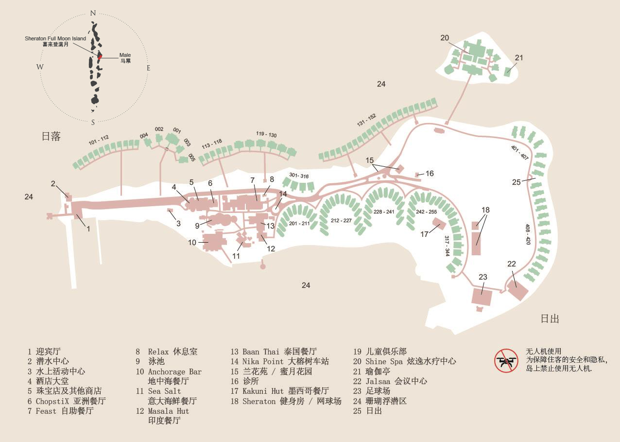 满月岛 Sheraton Full Moon Island,生长着众多品种的鲜花,姹紫嫣红、花香四溢。海滩客房则隐藏在浓重的绿色包围之中。水上屋建在清澈的礁湖之上。潜水学校、运动中心、网球场、健身房、沙滩排球、乒乓球、游泳池、迪斯科舞厅、卡拉OK等设施一应俱全,游客还可参加海上漫游、划独木舟、骑水上自行车、乘双体船、帆板、越岛作战、钓鱼比赛等丰富多彩的活动。无论您想体验放松还是寻求刺激,这里都能满足您的需求。