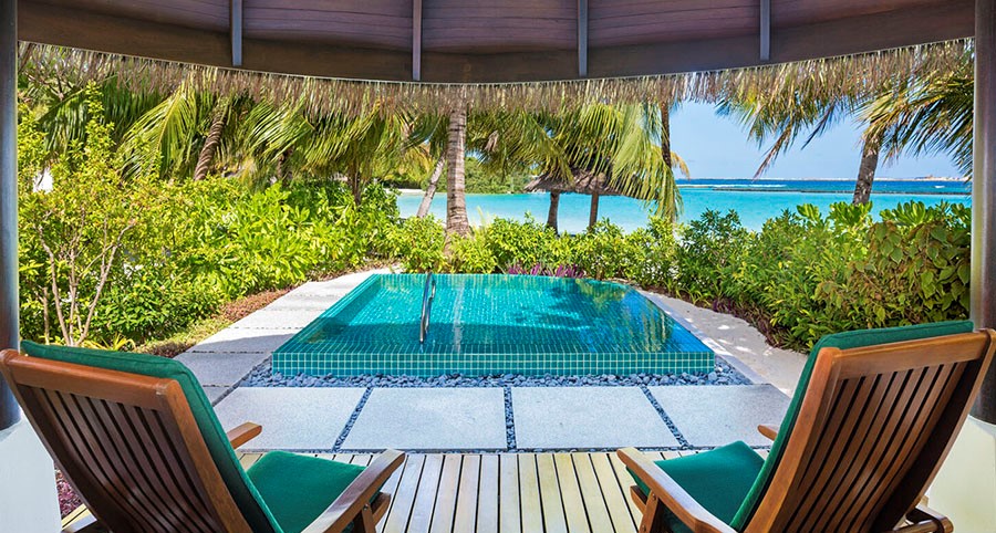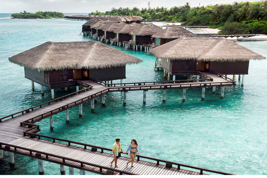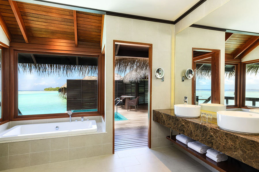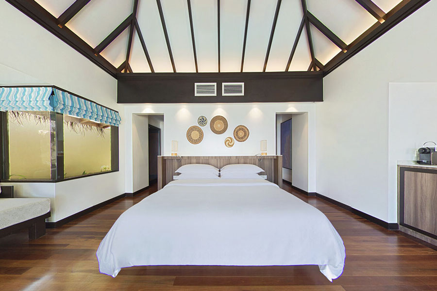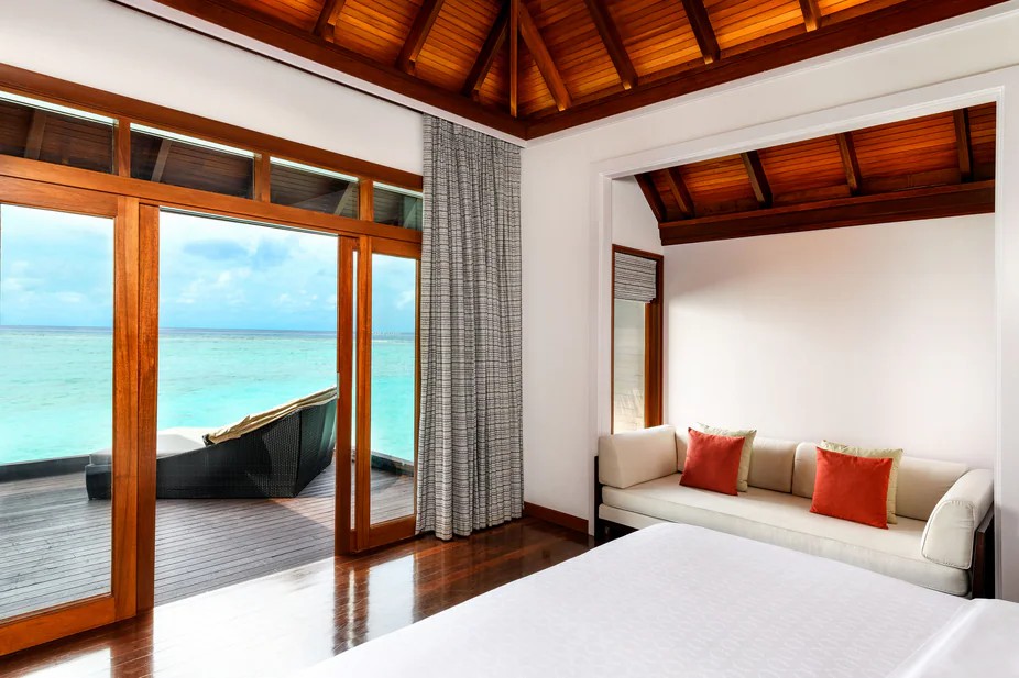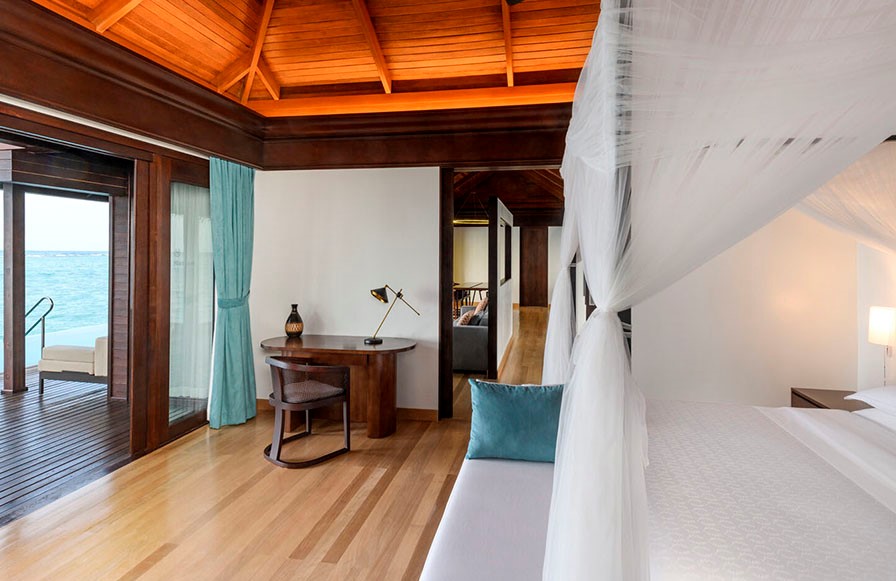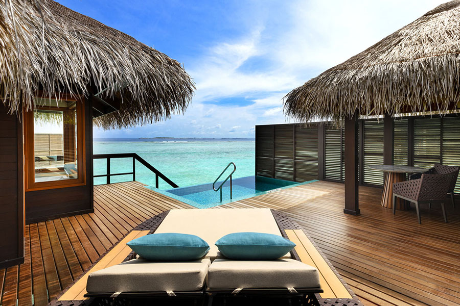 房型介绍:双卧水上泳池别墅占地约205平米,提供充足空间和家华体验。套房宽敞通透,配有私人泳池、时尚起居室和用餐区,是家庭度假或团体聚会的优选。套房位于泻湖上方,既可欣赏壮丽海景又可享受现代舒适住宿,放松体验与优推格调兼顾,缔造难忘住宿之旅。