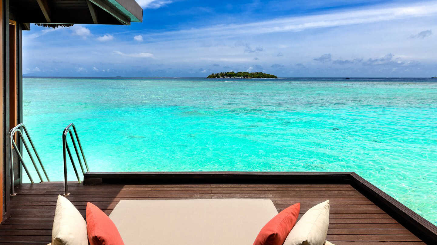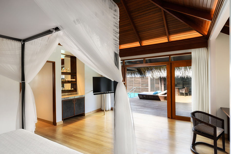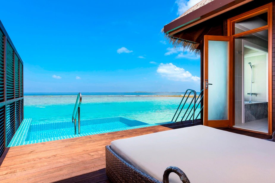 房型介绍:这座水上小屋带有泳池,占地约54平米,是品质卓越的静谧休憩之所。别墅设计优雅,设有私人泳池,可以在享受壮丽泻湖美景的同时放松身心。宽敞露台是日光浴、露天用餐或欣赏宁静环境的理想场所。直通清澈泻湖,可轻松前往体验浮潜或游泳。在这里,现代设施和美轮美奂的自然美景相得益彰,缔造精彩纷呈而又宁静的度假时光。