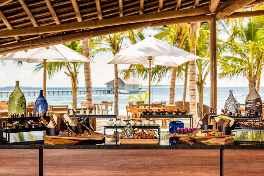 餐厅介绍:在充满情调的竹屋顶下,伴着徐徐微风,一起畅享美食。在我们诱人的集市型餐厅 ONU Marché,马尔代夫大圆盘岛瑞享度假村的客人们可以畅享自助早餐、晚餐和单点美食,以及我们每周一次、新奇有趣的主题之夜招牌活动。 瑞享标志性的集市 (marché) 概念是一种体验,您可以惬意享用以本地食材制作的新鲜美食、健康营养食品、当地特色菜和疗愈系食物。此外还有清爽的酒精和非酒精饮料,与您最喜爱的菜肴相得益彰。