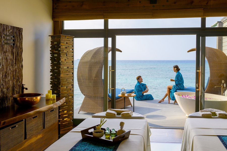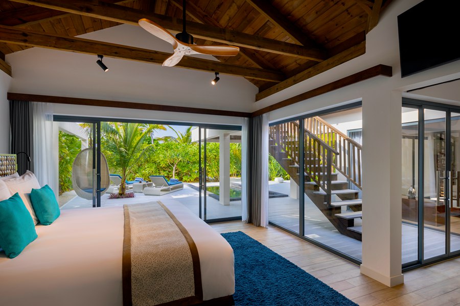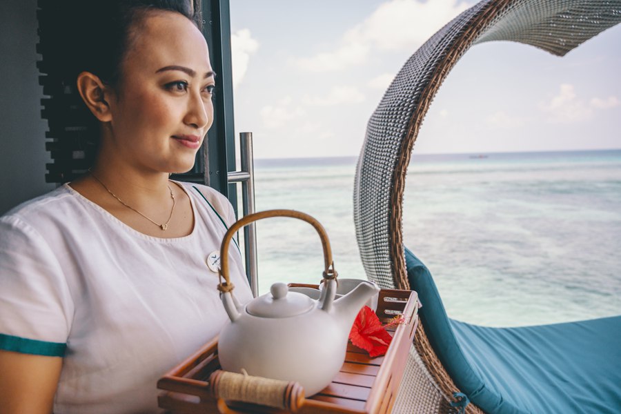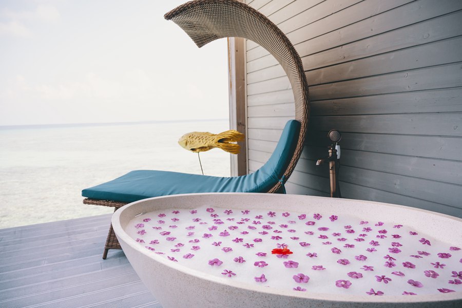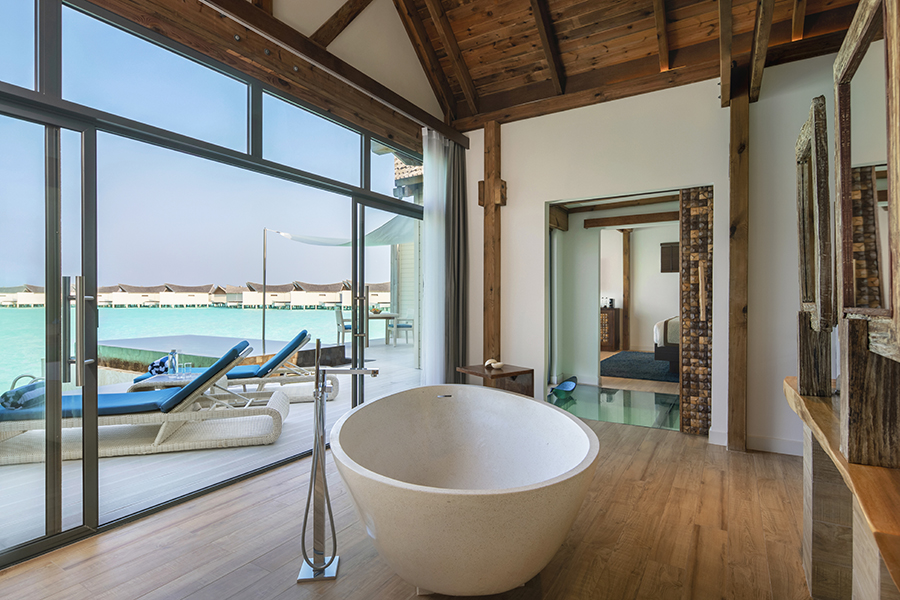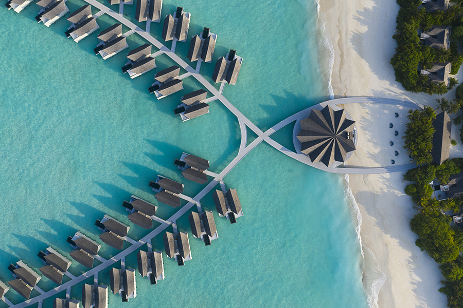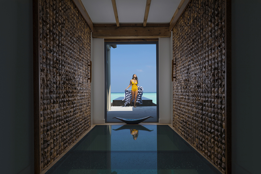 房型介绍:共有72间水上别墅,面积超过140平方米。 可以欣赏到大海的景色,并可直接通往蔚蓝的海水。 户外阳台上的私人泳池让您可以随时地放松身心。 玻璃底地板让您可以在不离开房间的情况下观赏到下方的热带海洋生活。 现代设计与马尔代夫海洋的无与伦比之美完美融合。