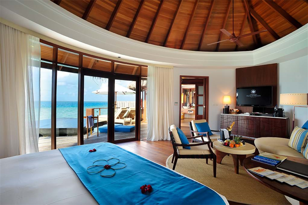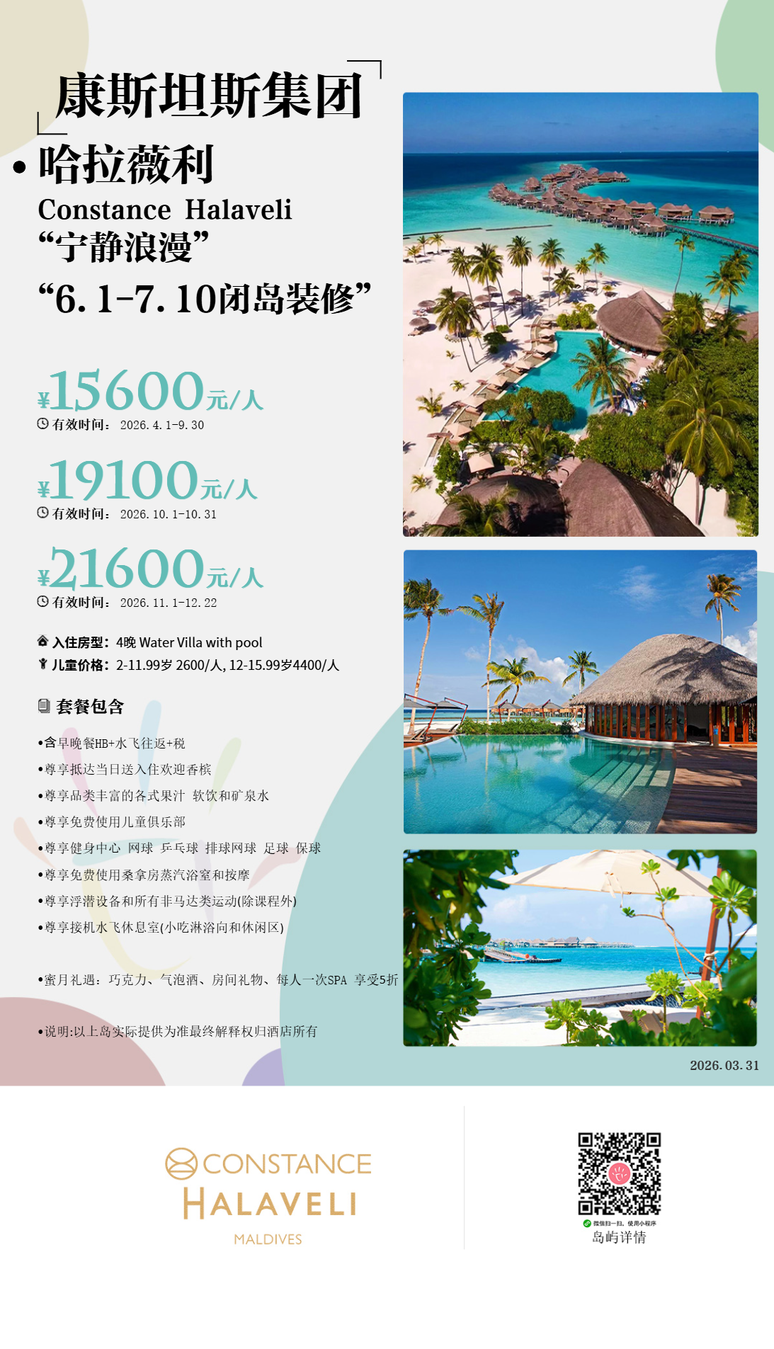 马尔代夫哈拉薇利Constance Halaveli Resort Maldives,于2009年5月开幕,岛屿的形状就像马尔代夫海湾区的传统多尼船一样,这个度假村是一个全新的五星级饭店,也是一个时空静止而梦想成真的地方。绿水白沙和绿意盎然的原始丛林互相搭配,成就了这里的浪漫空间。这也是一个无可比拟的休闲和恢复活力的宁静美好之地。康斯坦哈拉薇丽岛度假村是由世界著名酒店集团康斯坦(Contance)在马尔代夫设计建造的第二家豪华六星级岛屿酒店,秉承了其高贵、典雅和私密性相结合的独特理念,每幢别墅都拥有宽大独立的私人泳池,所有的房型都做了加大处理,沙滩别墅独享私人花园,而水上别墅则添置了贴心的全视野的阳光露台,每一处细节都经过世界设计师们的反复考究,让您能够充分享受马尔代夫的美好度假时光。