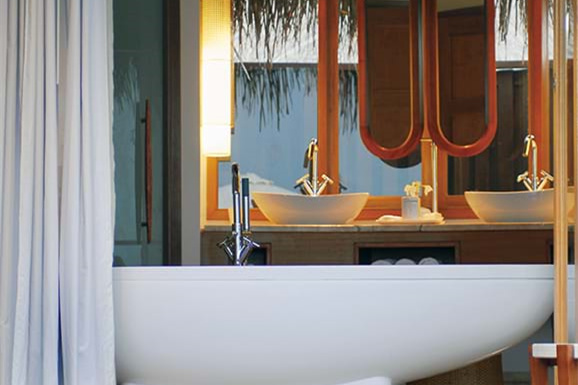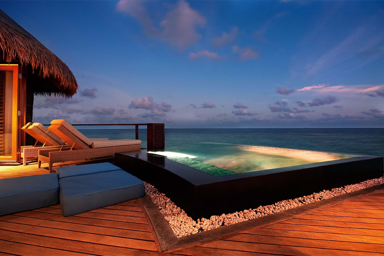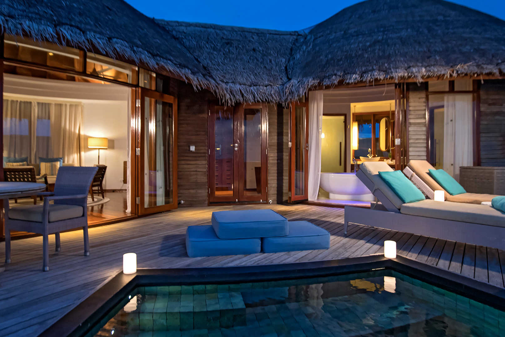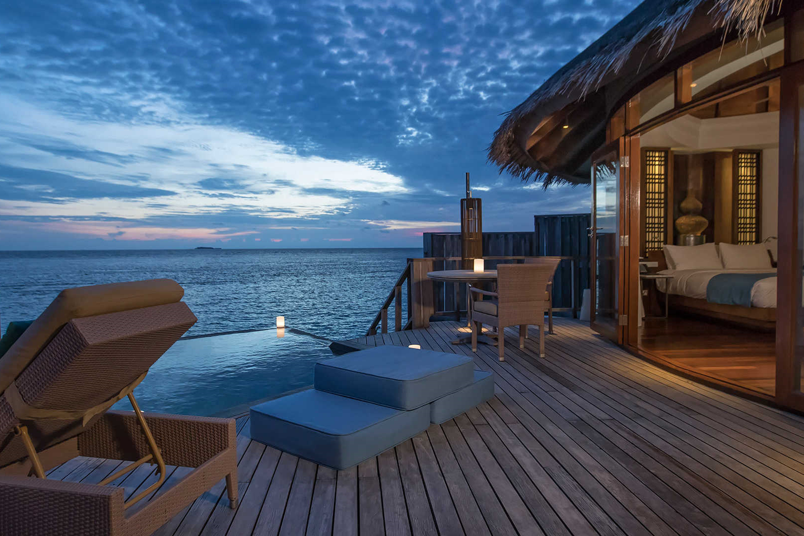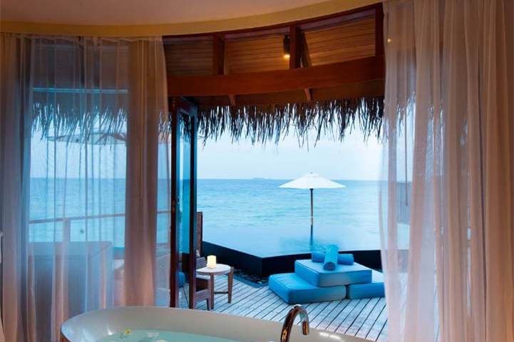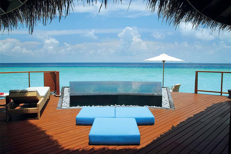 房型介绍:带私人泳池的水上别墅,房间面积100平,可以容下2大1小或3大。