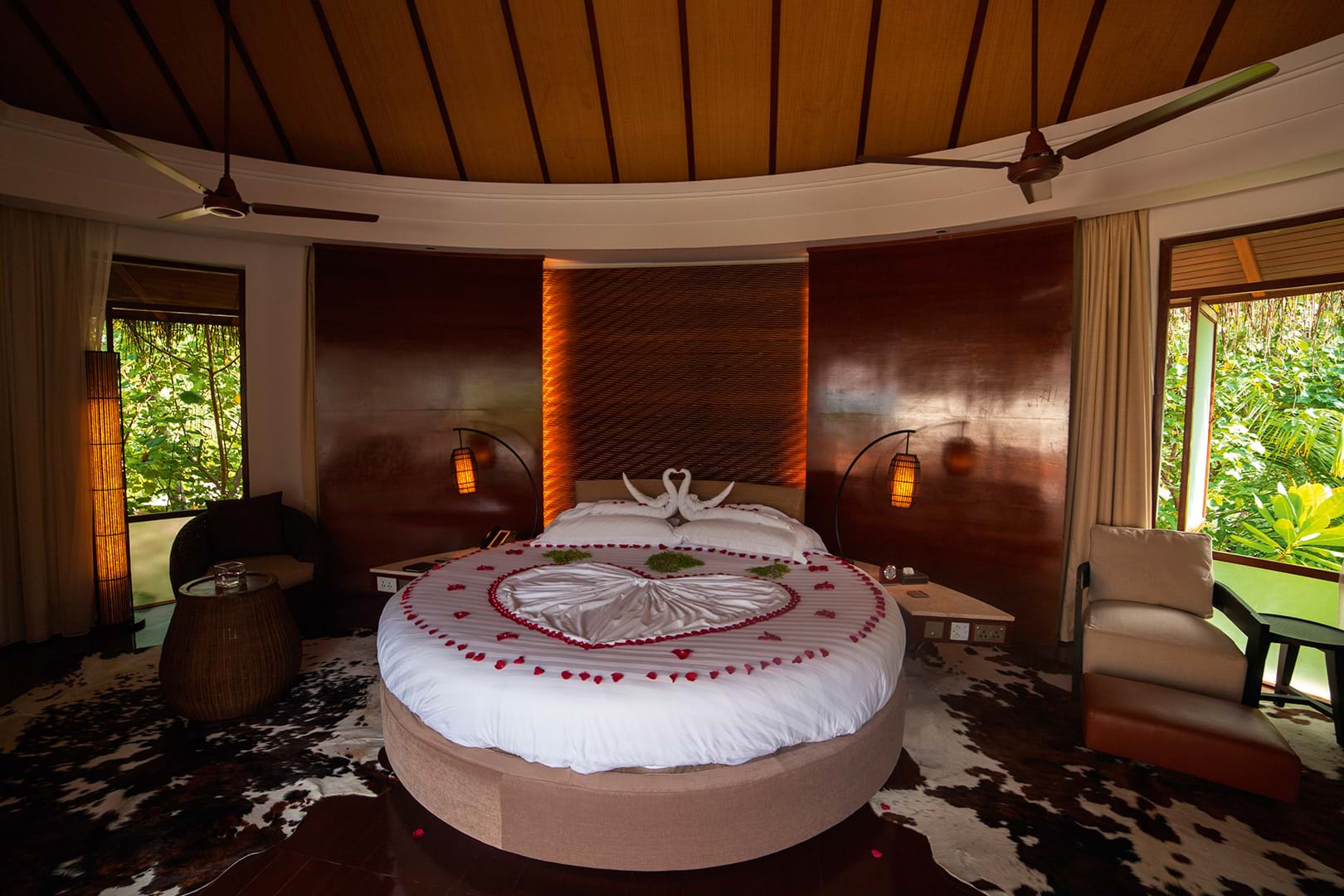 房型介绍:三个卧室的总统套房,全岛仅此一间,不管是私人泳池、沙发床、室内外淋浴、还是独特的布局和超大面积的雨林花园,都足够让您有终身难忘的体验。