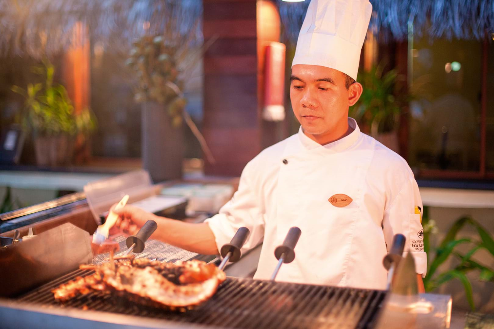 餐厅介绍:餐厅直接位于沙滩上,提供70个座位。只在晚上用餐,可以边欣赏落日,边用海鲜烧烤大餐。每周开放6天。