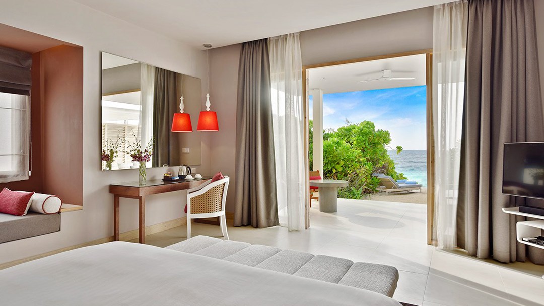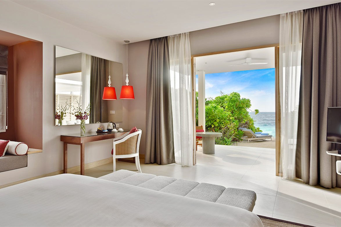 房型介绍:33 间豪华海滩平房是马尔代夫蜜月度假村中私人隐居的理想选择。简易别墅提供额外的空间,设有带半开放式花洒淋浴的露天浴室。椰林下宽敞的花园区也激发了亲密的时刻。
