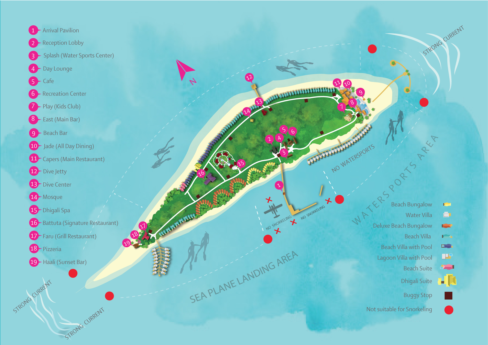 活动介绍:休闲中心提供各种游览活动。乘坐我们的玻璃底船探索我们热闹的珊瑚礁,而不会被淋湿。海豚巡游、日落巡游和钓鱼之旅将依然是一次难忘的体验。可以访问娱乐中心或使用 Dhigali 应用程序查看当天的活动时间表。健身房每天早上 6-00 点至晚上 9-00 点向客人开放。