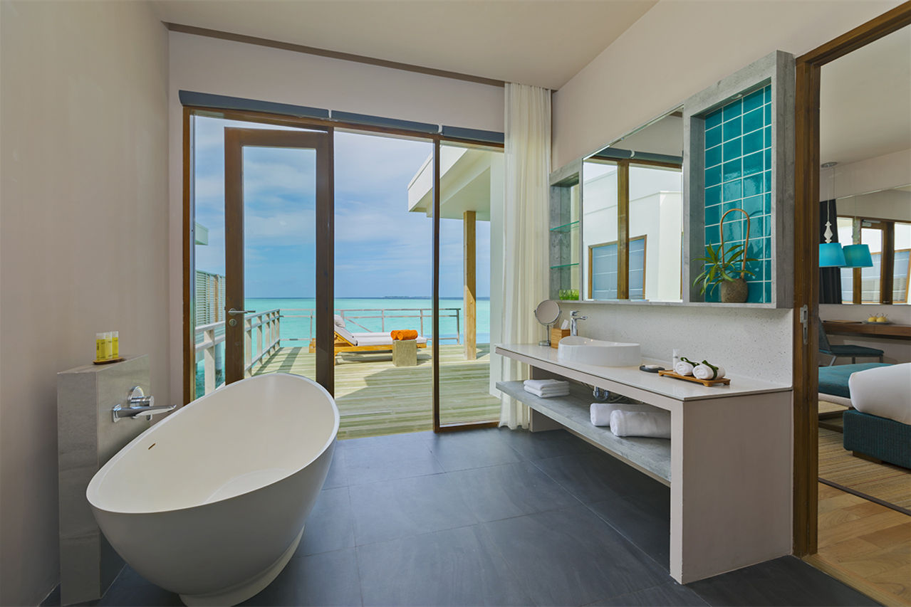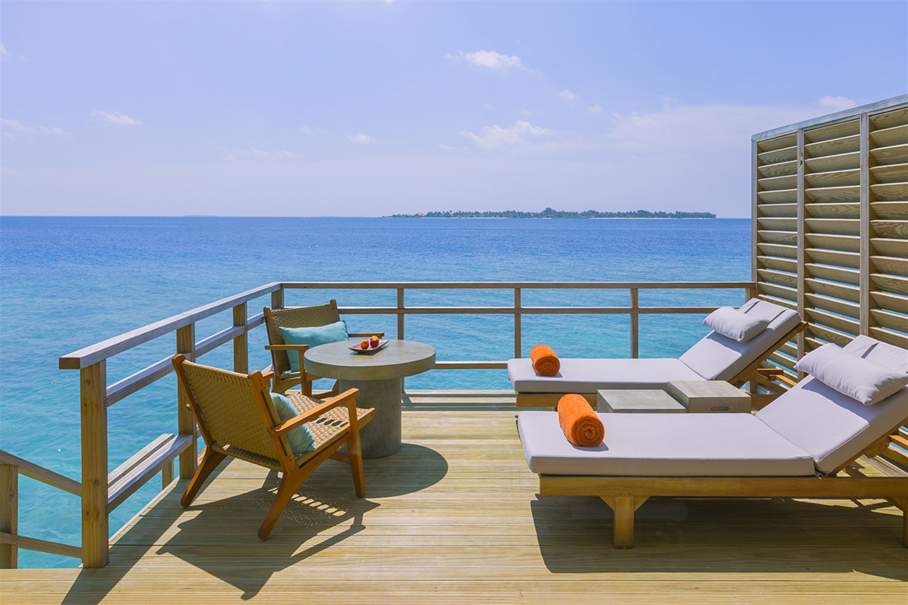 房型介绍: 24 栋水上别墅优雅地坐落在清澈的水面上,距离色彩缤纷的珊瑚礁仅几步之遥。每栋别墅都设有一个超大的木制日光浴平台,可通往大海,在那里等待着激动人心的游览。