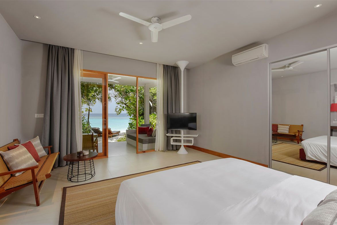 房型介绍:62 栋海滨别墅提供豪华的设施和完美的宁静,体验马尔代夫家庭度假村提供的最佳服务。别墅设有横跨室内和室外空间的浴室,配有花洒淋浴和深浴缸,可在天空下浸泡。宽敞的甲板俯瞰着海滩和碧蓝的海洋,日光浴躺椅坐落在珍珠白色的沙滩上。这些别墅可供四人舒适入住,是家庭住宿的理想选择。