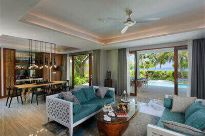 房型介绍:海滩别墅设有私人泳池,是情侣庆祝浪漫的理想选择。别墅可欣赏到波光粼粼的蓝绿色海水的壮丽海景,同时设有一间带令人振奋的花洒淋浴的浴室,可享受岛上温和的空气,还有一个宽敞的带顶棚的户外阳台,通向海滩的瓷沙,在那里可以享受私人阳光躺椅坐落在原生叶子下。