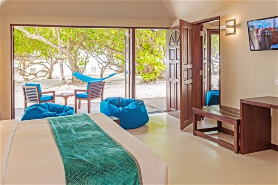 房型介绍:海滩别墅位于沿着环礁轮廓与主要的海滩正面。非常方便前往令人神怡的大海,与酒店设施也近在咫尺,配备了各种现代化的设施。