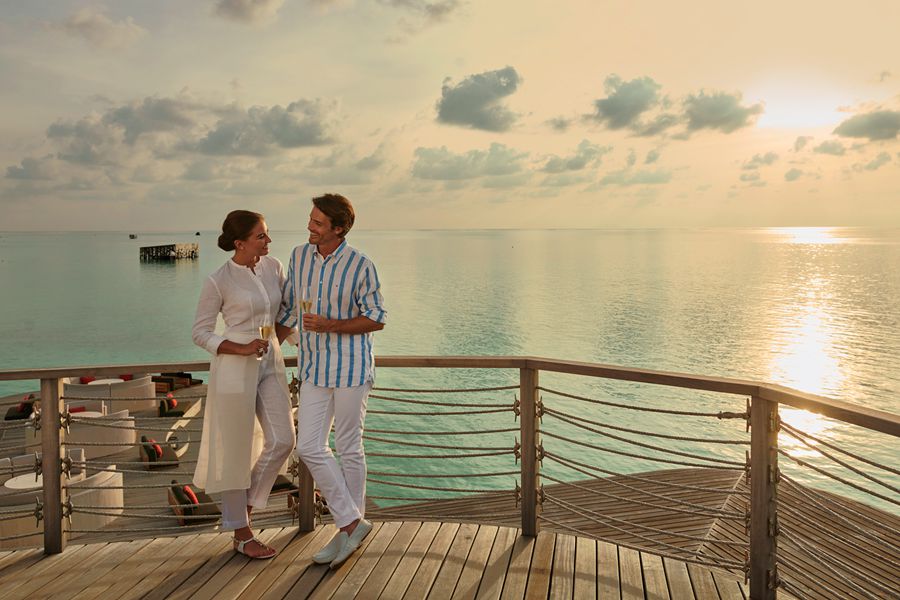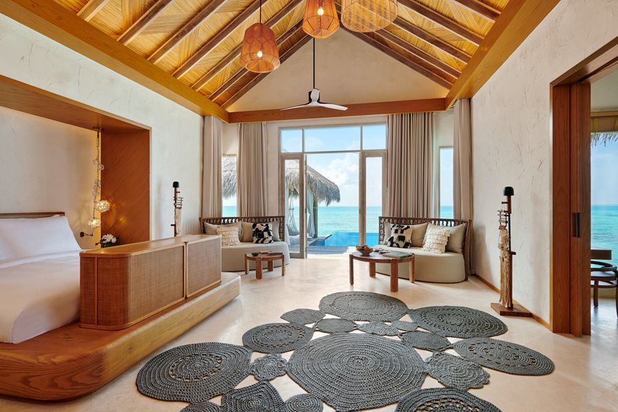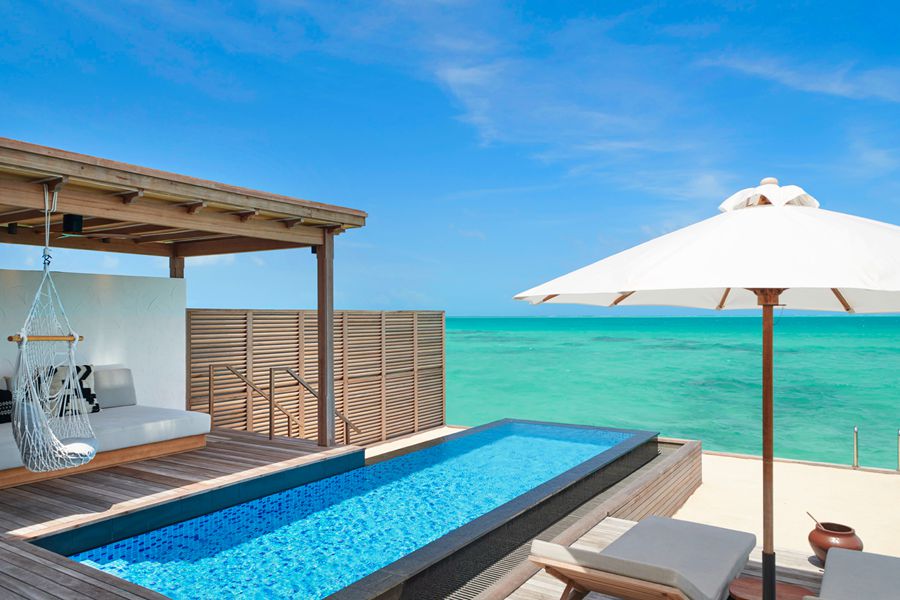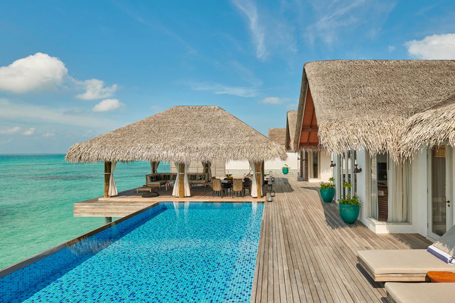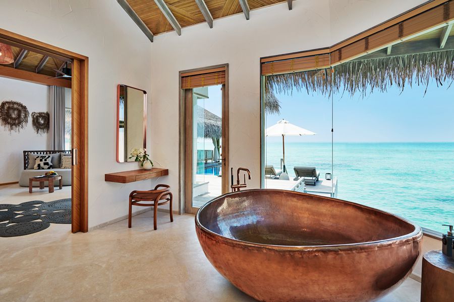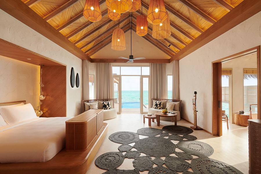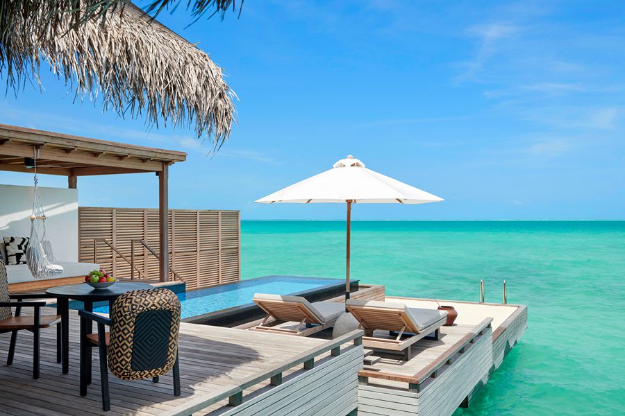 房型介绍:坐落在印度洋的温柔海浪之上。这些别墅设有超大铜浴缸、连接室内的浴室、私人休闲甲板、凉亭、小型游泳池等。以优雅别致的风格设计,带你探索马尔代夫风格住宿的风味。在轻轻潺潺的水声中放松身心,在无尽的海平线上享受乐趣。