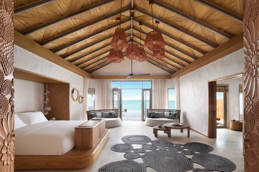 房型介绍:525㎡的极致别墅面积,73㎡的超大私人泳池,这是斯茹芬度假岛堪称的顶级享受。在轻轻潺潺的海水声中放松身心,享受您的三卧室水上日落别墅,设有慵懒的超大铜浴缸、可直接通往泻湖的私人沙滩甲板、私人凉亭、私人游泳池、带独立淋浴、双水槽、咖啡机、葡萄酒冰箱、Bose Hi-Fi 系统和特大号床。