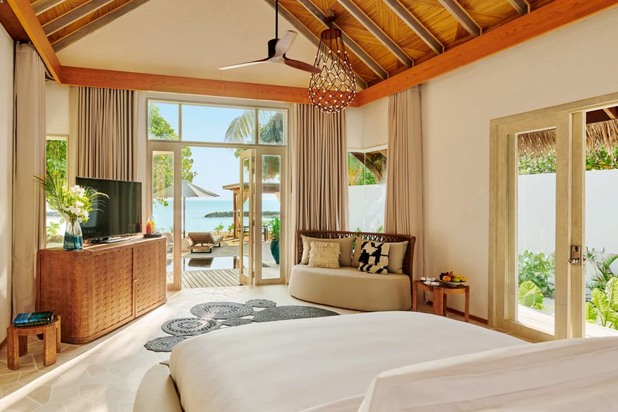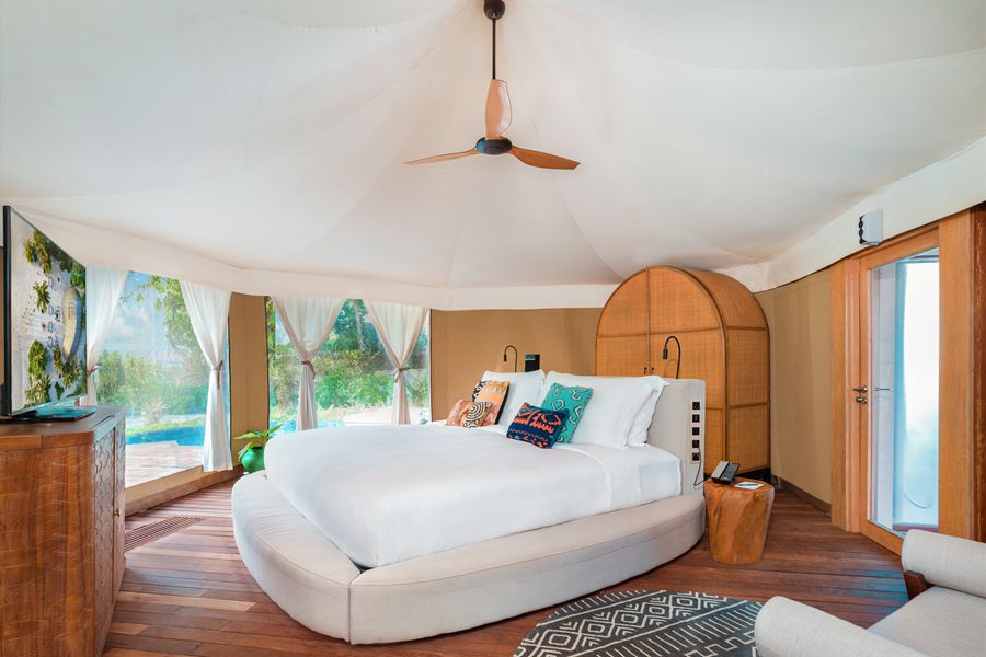 房型介绍:这些495平方米的私人豪华泳池别墅坐落在郁郁葱葱的热带树叶中,非常适合家庭居住。别墅前面是原始的印度洋,后面是郁郁葱葱的红树林,设有私人热带花园、带独立淋浴和双水槽的宽敞室内外浴室、咖啡机、葡萄酒冰箱、Bose高保真系统、特大号床和独立的客厅区。还有一位专门的别墅主人每天24小时提供服务,只需一个电话,就可以开始探索我们的美丽海岛了。