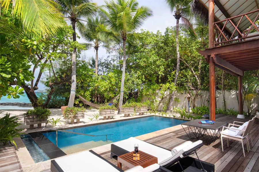 房型介绍:双卧总统泳池套房全岛仅2套,面积达216㎡,是全岛最大的房型。复式别墅造型,铺设茅草屋顶,外观粗犷大方。套房分别在两层楼,有一个远眺印度洋的大客厅,大型木板露台带日光浴躺椅,您可以随时享受阳光的温暖,或者跳进私人小泳池畅游一圈。客厅配一台52寸液晶电视和家庭影院系统,卧室则是一台32寸液晶电视,另有一个酒水齐全的迷你吧。