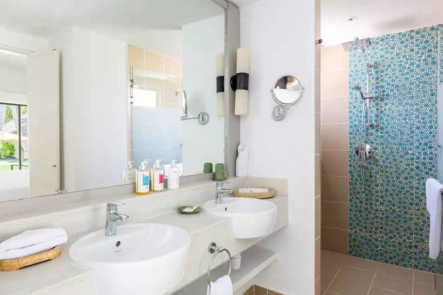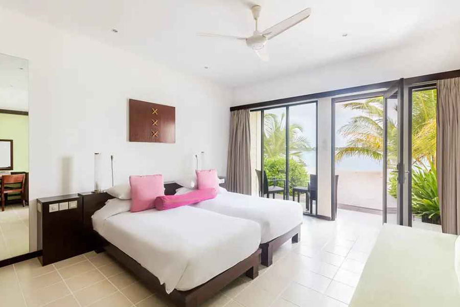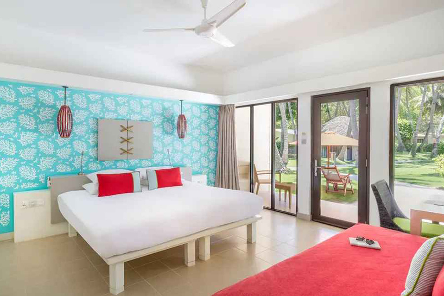 房型介绍:单层平房位于花园岛的中心地带,其客房非常适合带一个孩子的情侣入住。享受露台和额外的空间。使用的颜色与泻湖的颜色相呼应。