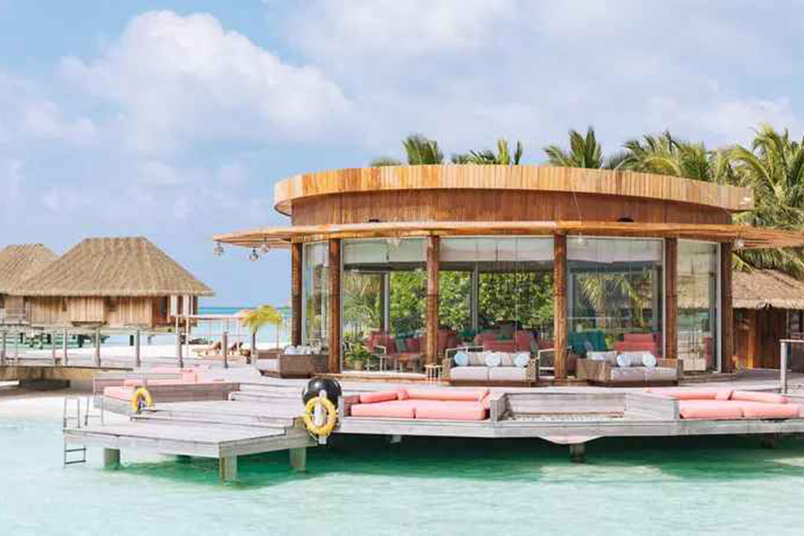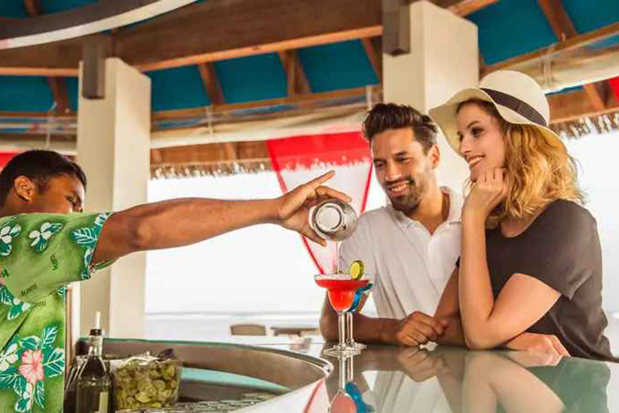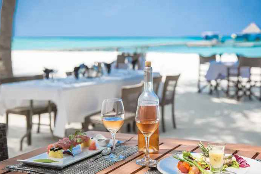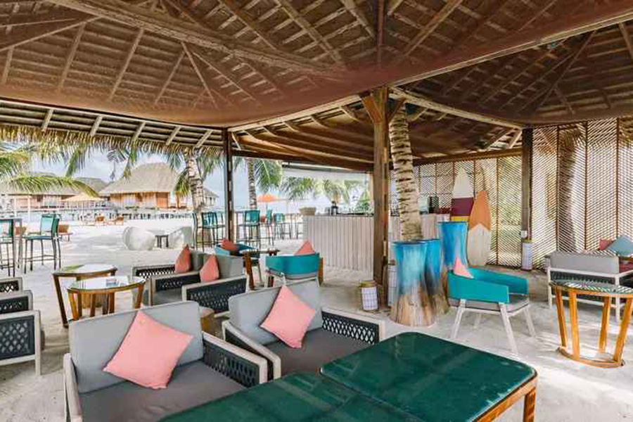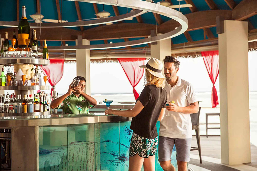 餐厅介绍:无论是白天喝一杯清凉的酒,还是在傍晚来临时喝一杯小酒,都可以从这个令人放松的休憩中欣赏马尔代夫高跷水上别墅和波光粼粼的泻湖的壮丽景色。