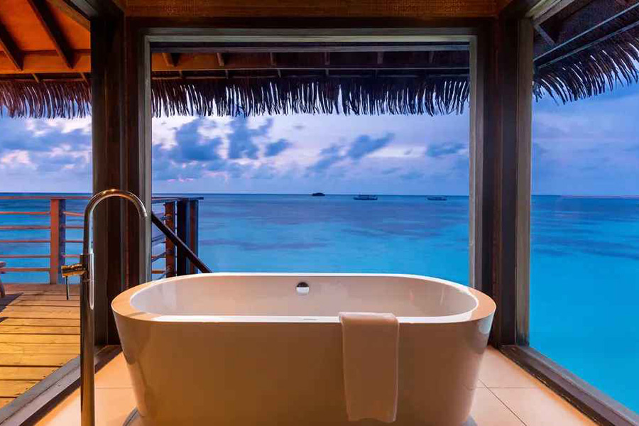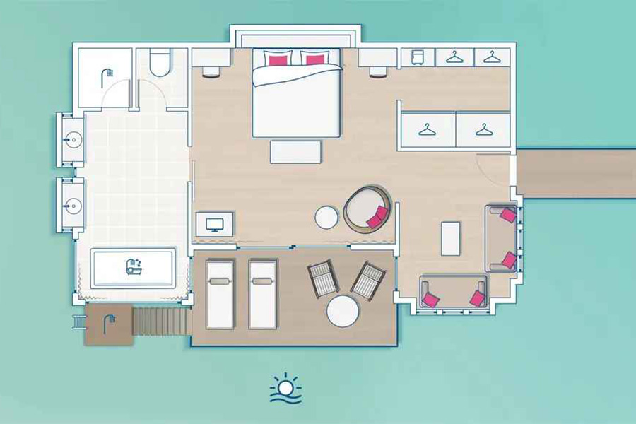 房型介绍:在印度洋的壮丽景色中畅饮。这间套房以其渔夫小屋的设计引人注目。浴室俯瞰着泻湖,而全新的室内设计则采用深色木材,展现了马尔代夫的魔力。