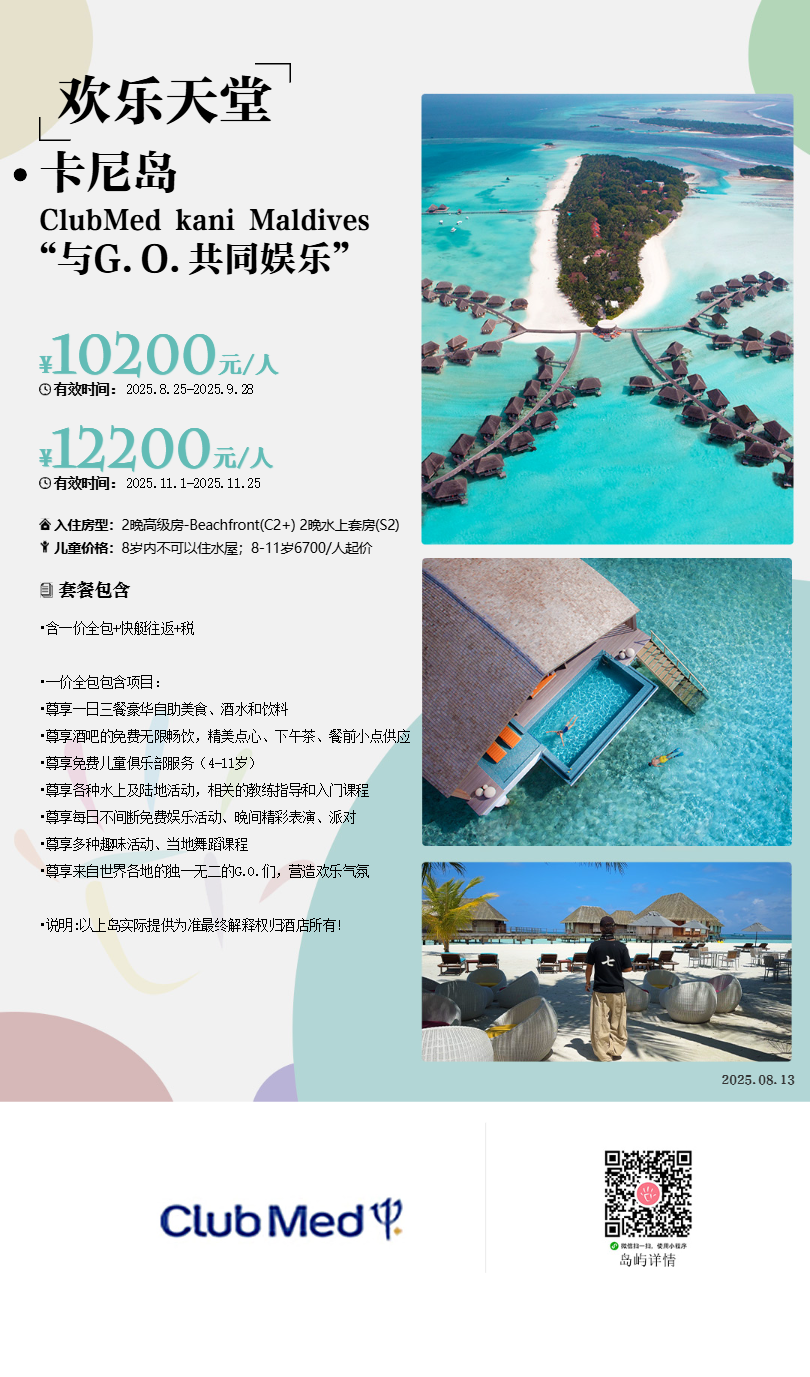 介绍:提供了更多乐趣、友谊和建立信心的冒险。体验新的活动和运动,共同创造欢乐的时刻和庆祝活动。受积极教育的启发,Mini Club Med+ 提倡合作、善良和个人成长。鼓励孩子们发展自己的优势,从创造力到自信。凭借他们的专业知识,他们创造了一个培育环境,让孩子们茁壮成长并留下持久的回忆。