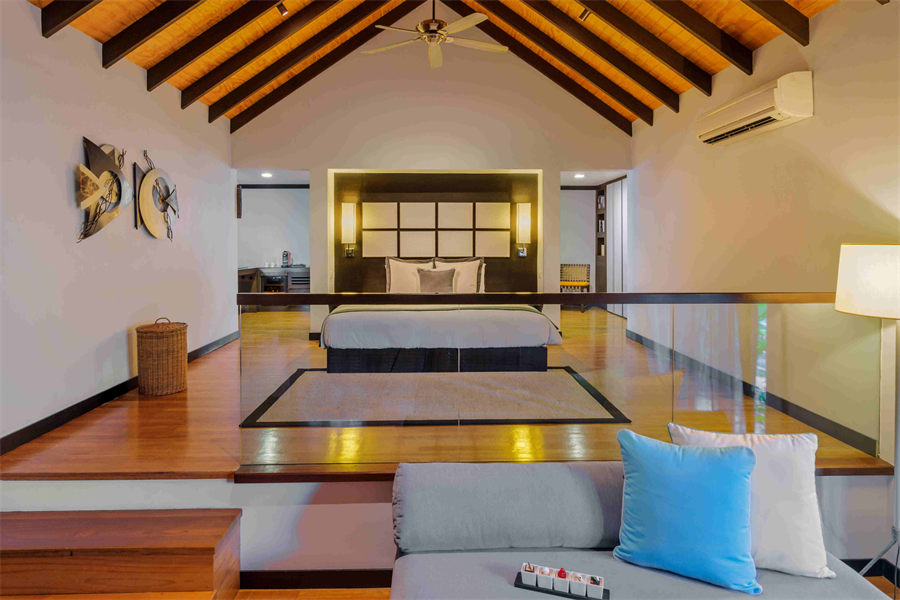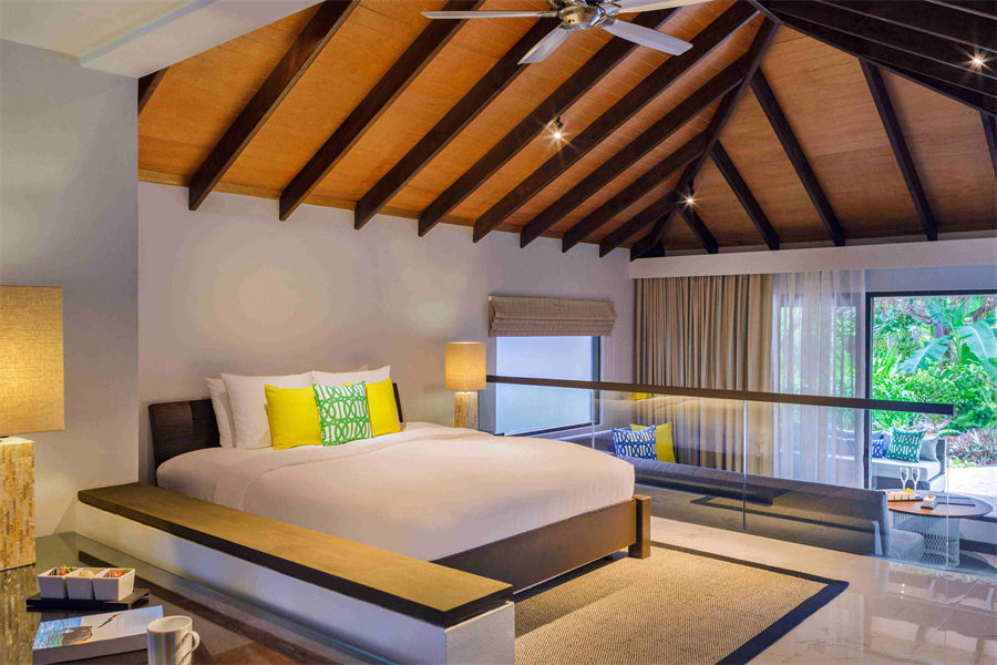房型介绍:在我们的豪华别墅中,享受岛屿自由,轻松优雅,赤脚的日子从你踏上门外柔软洁白的沙滩开始。这座75平方米的圣地通向花园绿洲——一个被热带绿植环绕、沐浴在马尔代夫阳光下、安静角落——邀请你安顿下来,深呼吸,感受水流的节奏。