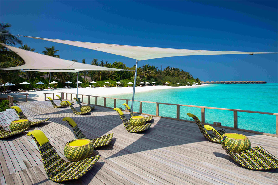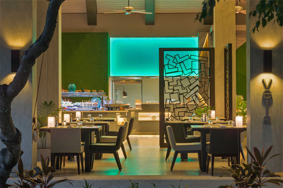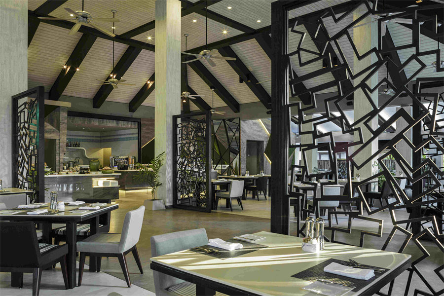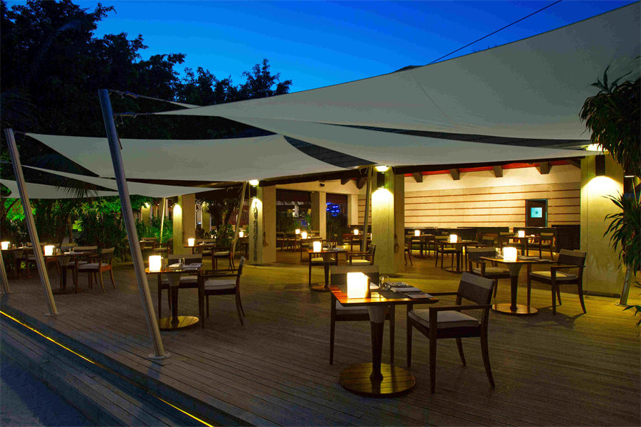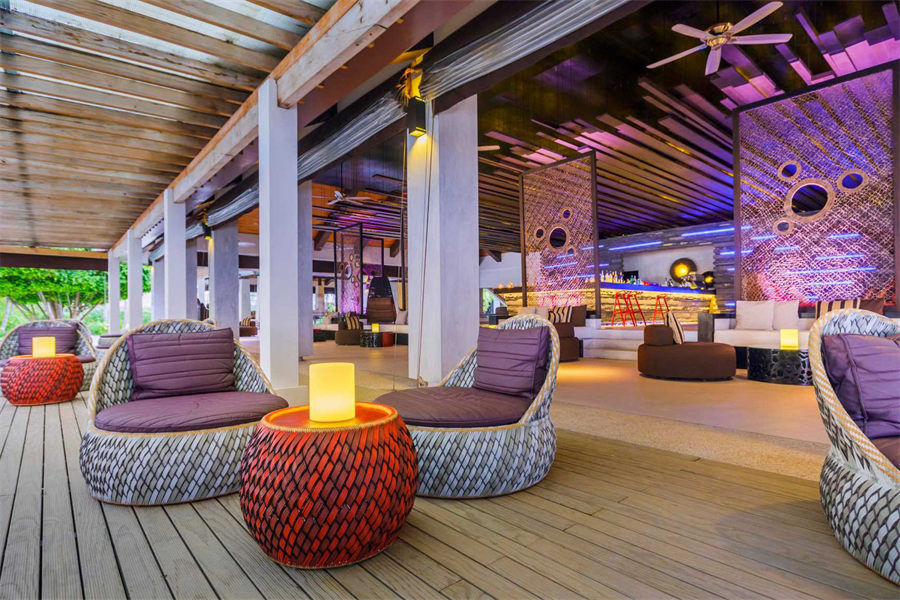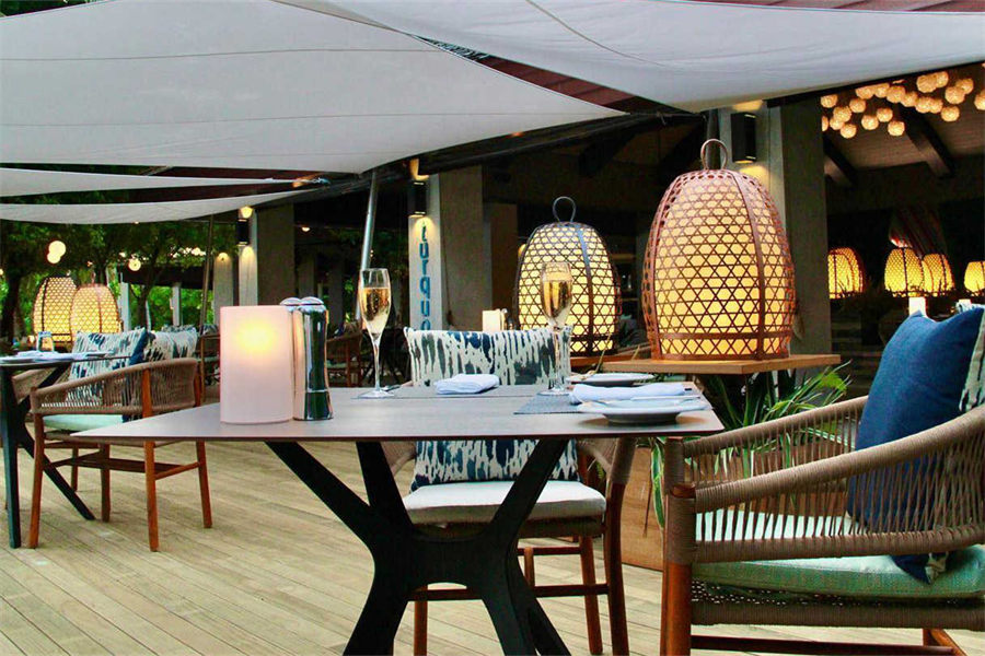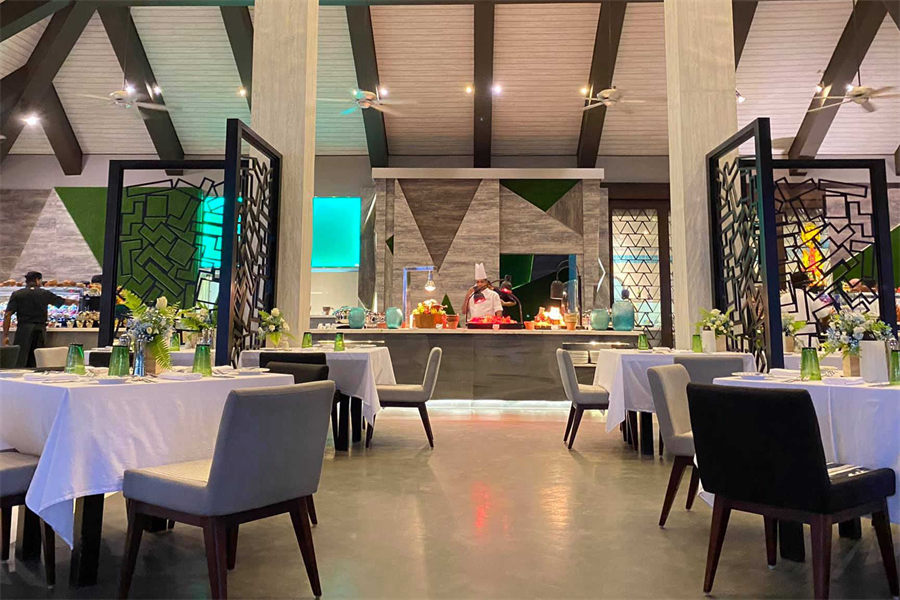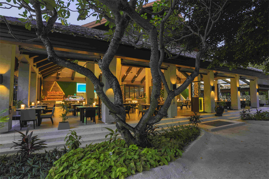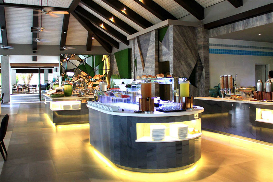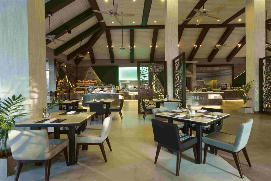 餐厅介绍:岛屿用有2个酒吧,泳池旁的迷你酒吧亭以及主餐厅酒吧。室内也呈现沙滩地面,晚上会有小型音乐会,但是户外更迷人,历史悠久的大型植被把整个户外到泳池区域都遮盖了起来,非常适合怕晒又想充分享受户外的中国同胞。并且每周酒店管理层都会在户外区域准备鸡尾酒会,全场酒店买单,为的就是让客人们尽兴!