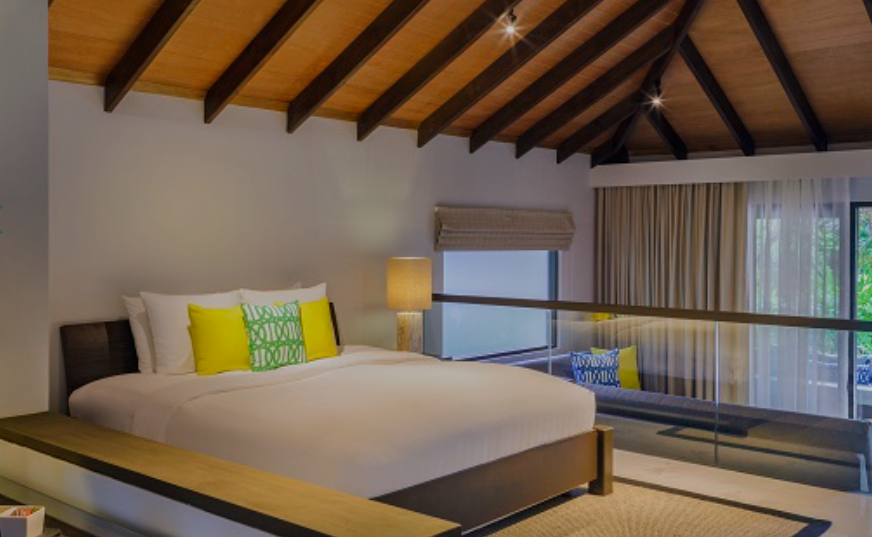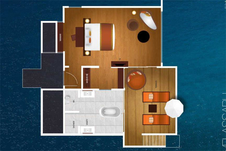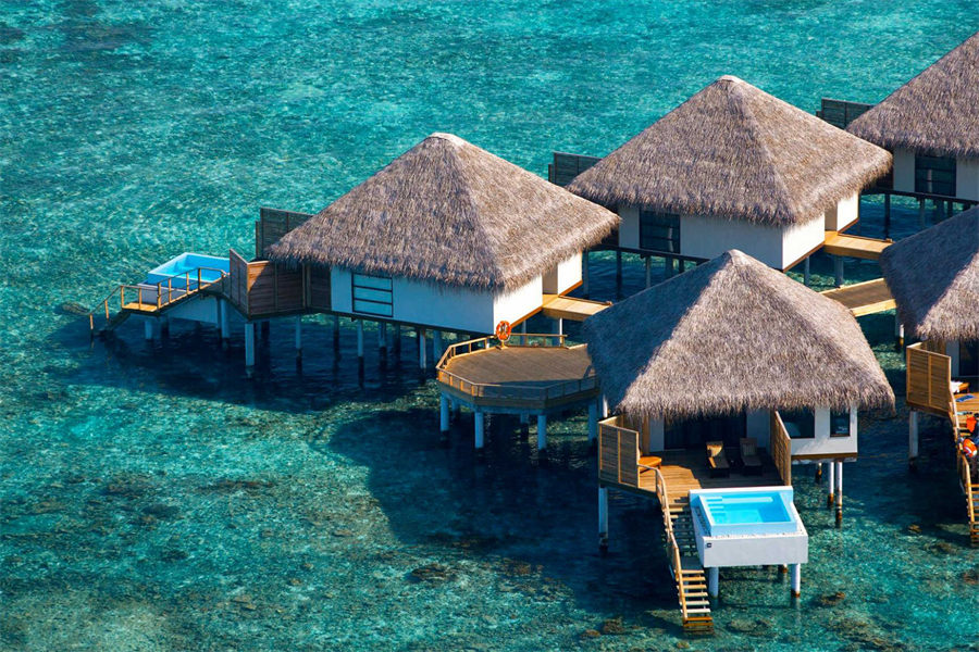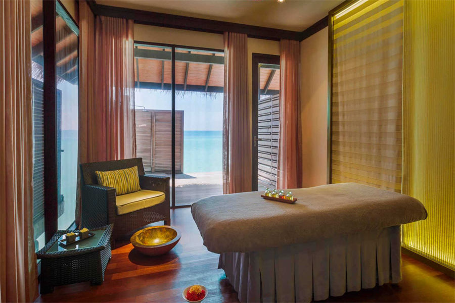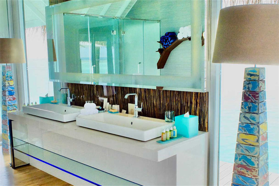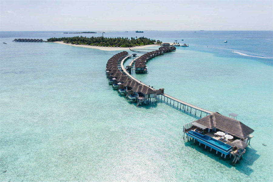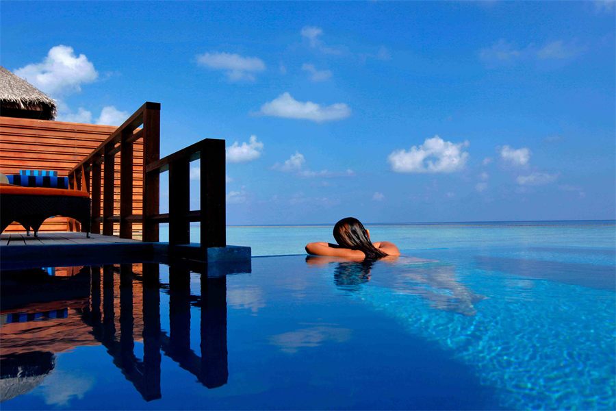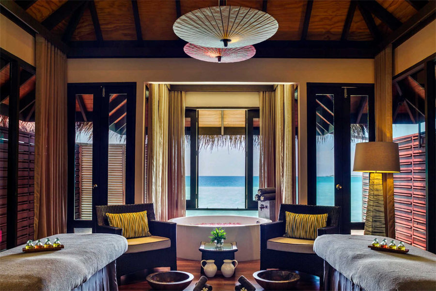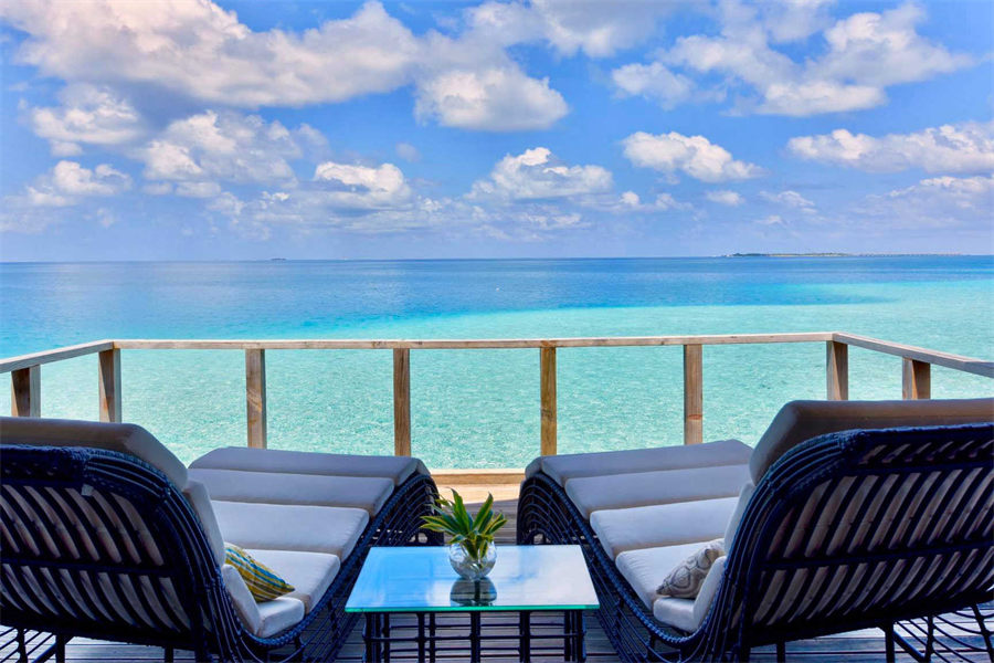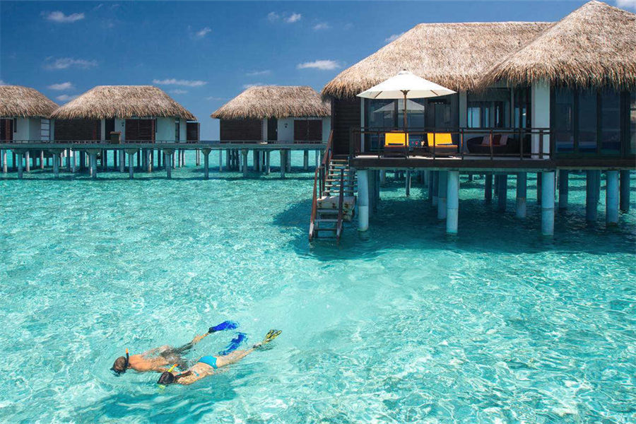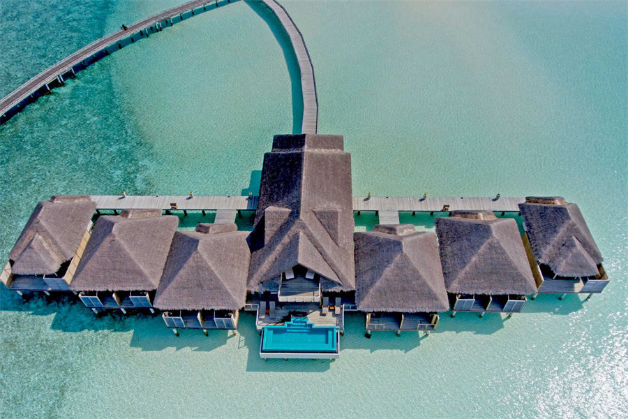 房型介绍:水上别墅优雅地坐落在清澈的碧绿色泻湖之上,是一处亲密的水上圣地,海洋成为你每一个转角的伴侣,落地玻璃窗和门扉可眺望无尽的海景,通向带休息区和直接泻湖入口的日光甲板。
