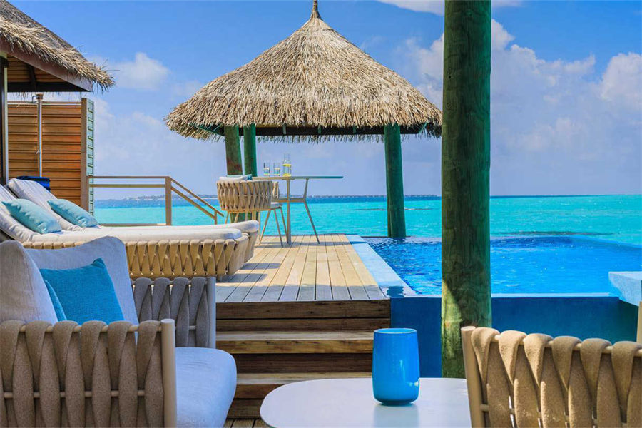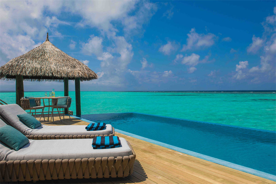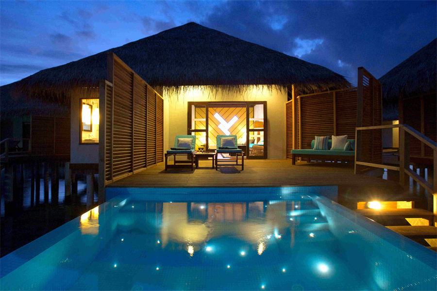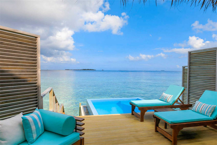 房型介绍:水上别墅带泳池轻轻漂浮在印度洋之上,是一处宁静精致的圣地,大海成为你住宿的一部分。这座80平方米的水上天堂通向私人日光甲板和泳池,邀请你在温暖的阳光下停留,脚下是闪烁的泻湖。