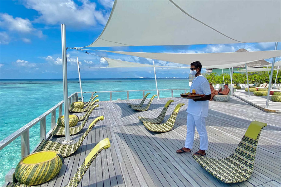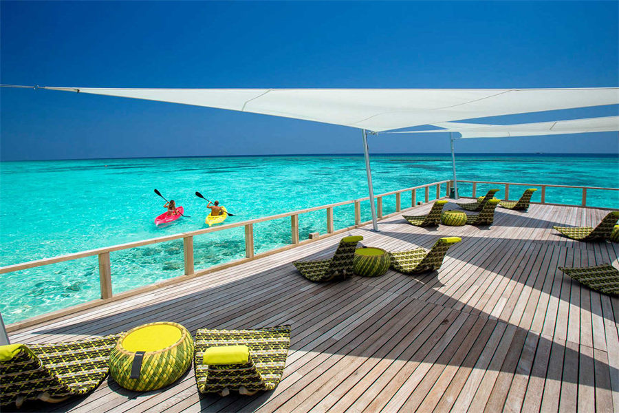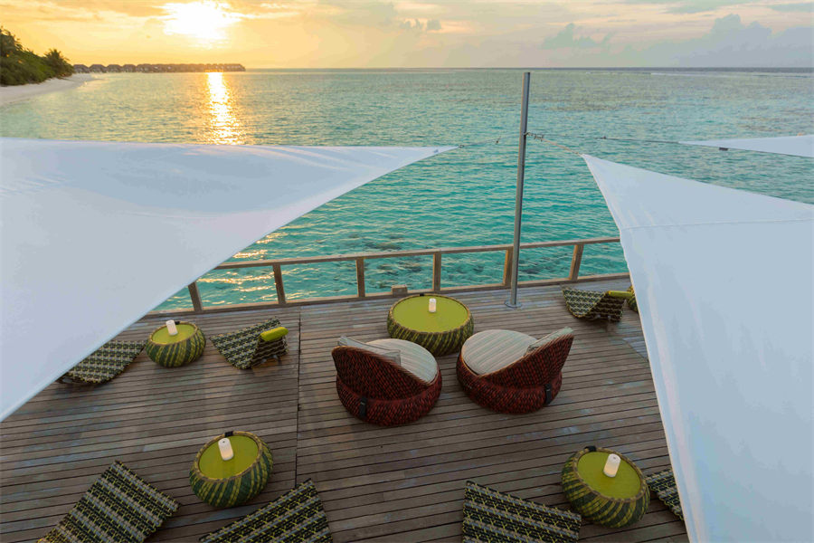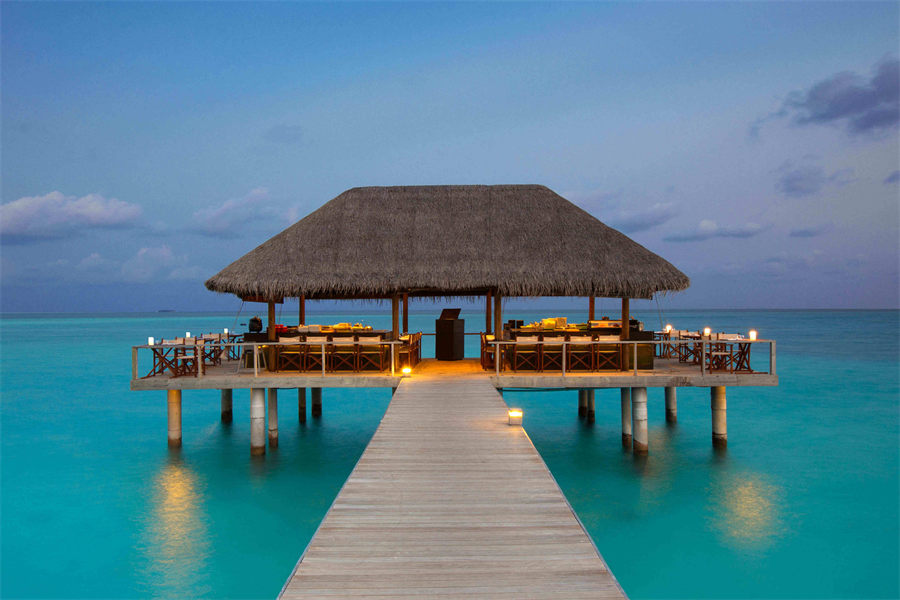 餐厅介绍:酒吧位于海上,可以下去浮潜,或观赏海洋生物。在这里可以品尝到凉爽的鸡尾酒,欣赏马尔代夫海景。