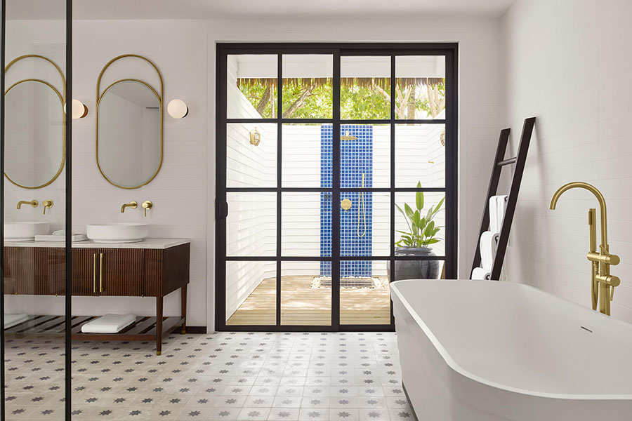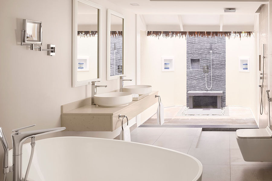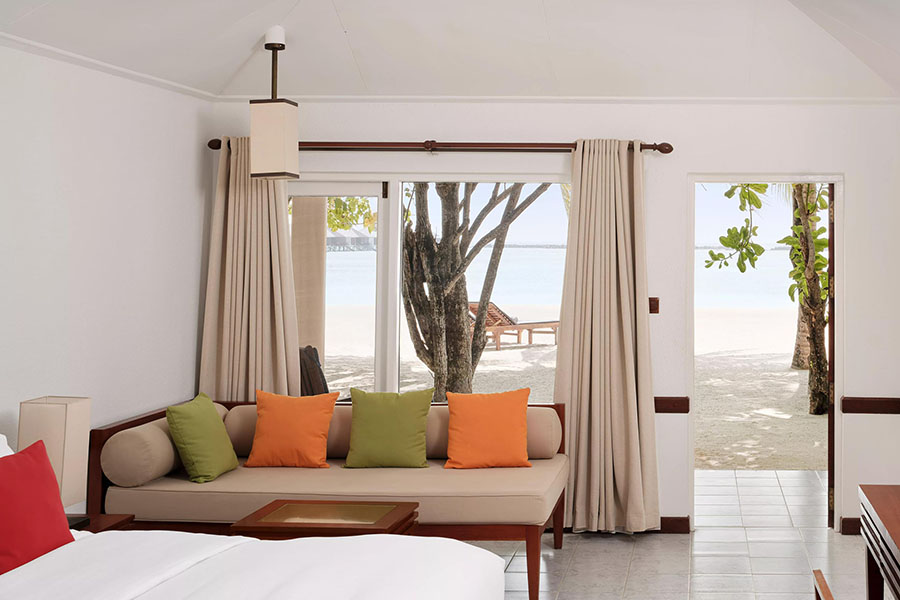 房型介绍:每间单卧室海滩别墅均设有露天淋浴间,可欣赏蓝色泻湖一览无余的美景,并可直接通往我们岛上的糖白色沙滩。您的别墅周围环绕着斑驳的热带绿色植物,是一个宁静的度假胜地,您可以在这里放松身心。