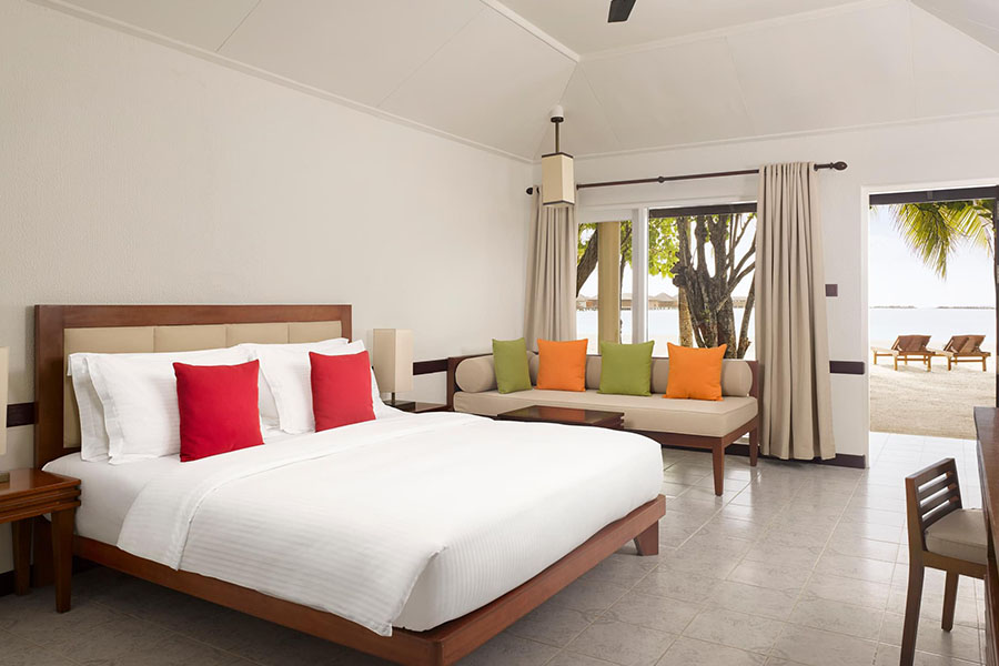 房型介绍:这些别墅可欣赏迷人的日落美景,可直接通往波光粼粼的绿松石泻湖,拥有温馨的海滨环境,是寻求马尔代夫浪漫之旅的情侣的理想下榻之所 这些别墅提供高架海滨度假胜地,设有私人游泳池和日光浴平台,非常适合捕捉壮丽的日落。直接踏上柔软的白色沙滩,让海浪的舒缓声音冲刷您,在您的专属度假胜地的宁静中放松身心