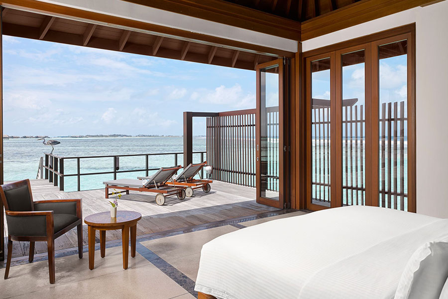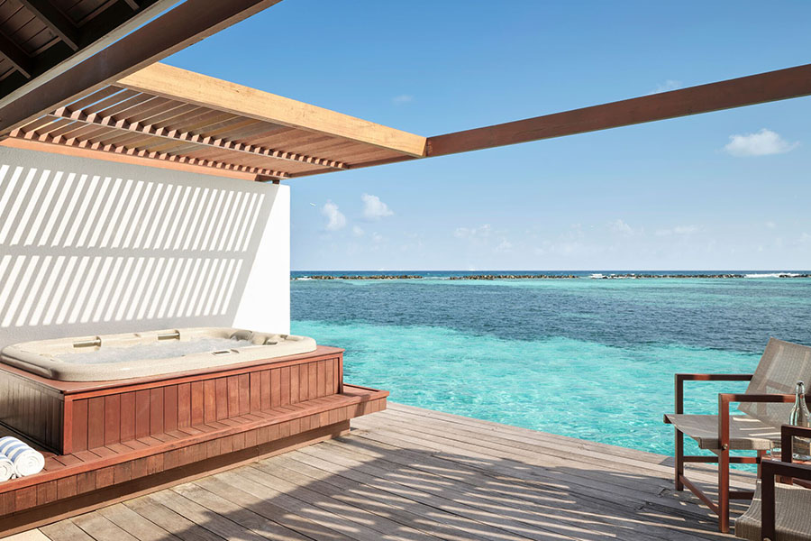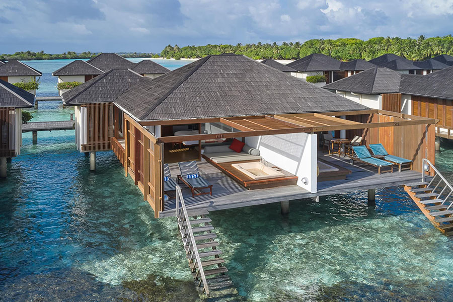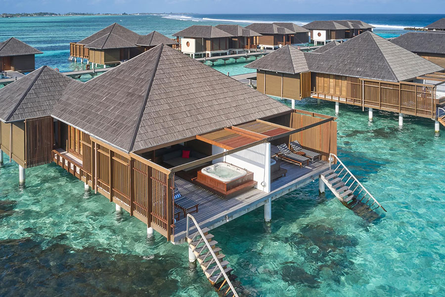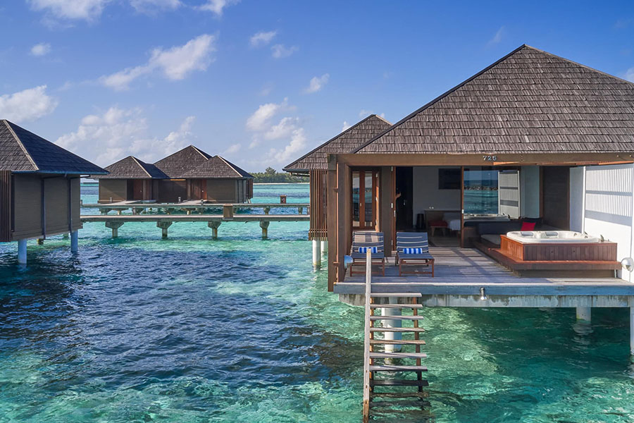 房型介绍:带漩涡浴缸的水上别墅位于岛屿的东侧,是体验举世闻名的马尔代夫日出的最佳场所之一。每间客房的设计都考虑到了放纵,设有宽敞的起居区、私人日光浴平台,并可通往下方波光粼粼的海蓝宝石水域。