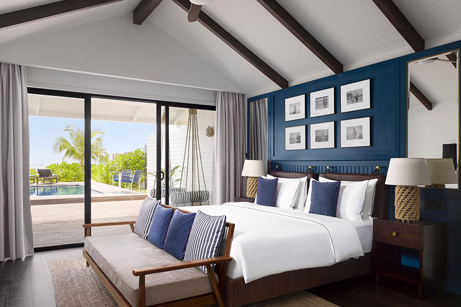 房型介绍:从海洋中汲取灵感,展示现代航海设计,150平方米的宽敞空间将永恒的内饰与水生色调相结合,提供豪华室内外生活的缩影。起身感受周围环境的温柔拥抱,或沉浸在绿松石泻湖中,那里充满了海洋生物,距离别墅仅几步之遥。您的泻湖绿洲召唤您重新获得平衡,激发灵感,并与大自然重新建立联系。