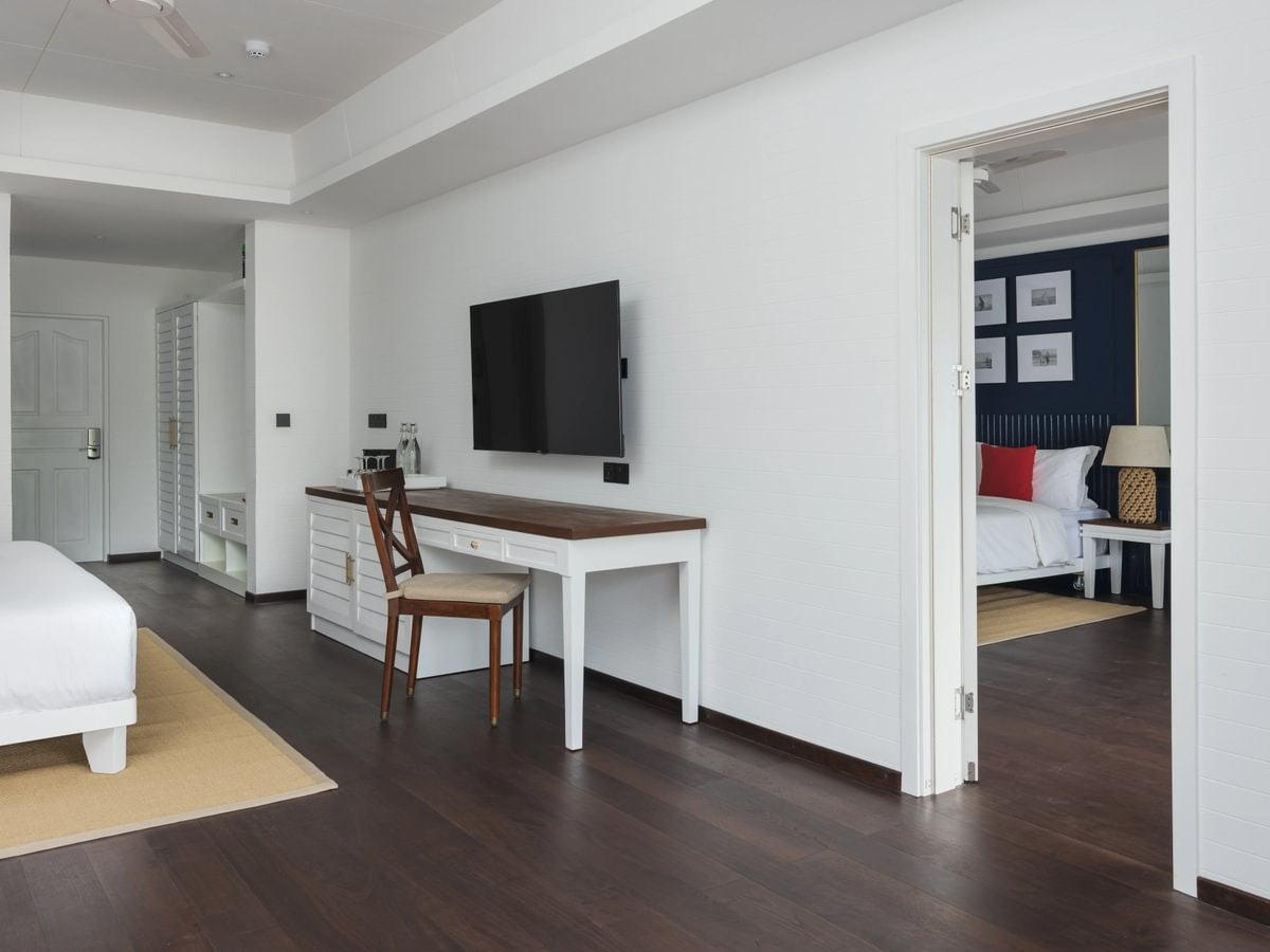房型介绍:每间双卧室家庭海滩别墅都是一个僻静的世外桃源。大型露天淋浴间、可俯瞰绿松石泻湖的连通房以及私人露台共同营造出情侣或多代家庭寻求极致悠闲奢华的空间。