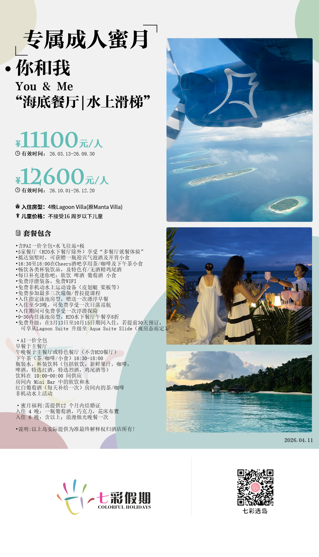 ②纯正蜜月岛,不接受16岁以下儿童。