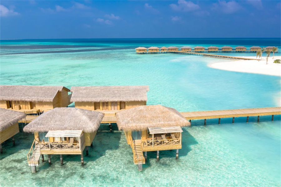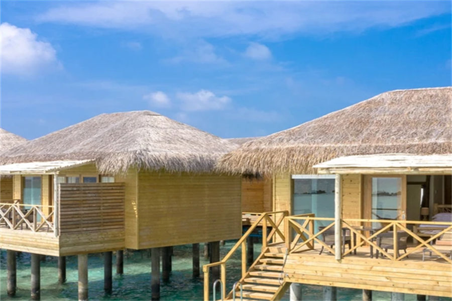 岛屿较小,所以沙滩别墅仅仅10栋;浮潜一般般;大部分水屋不带泳池。
